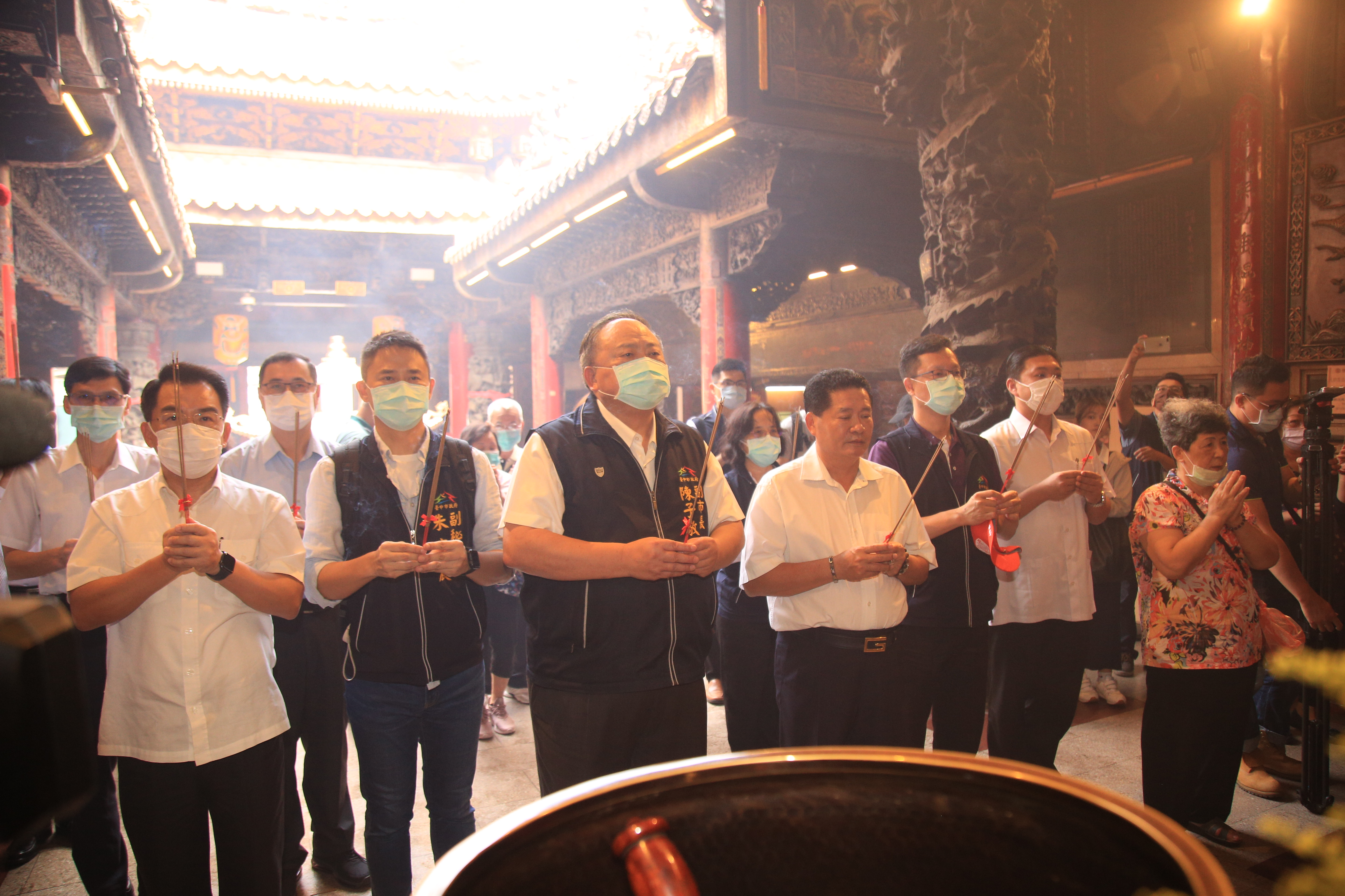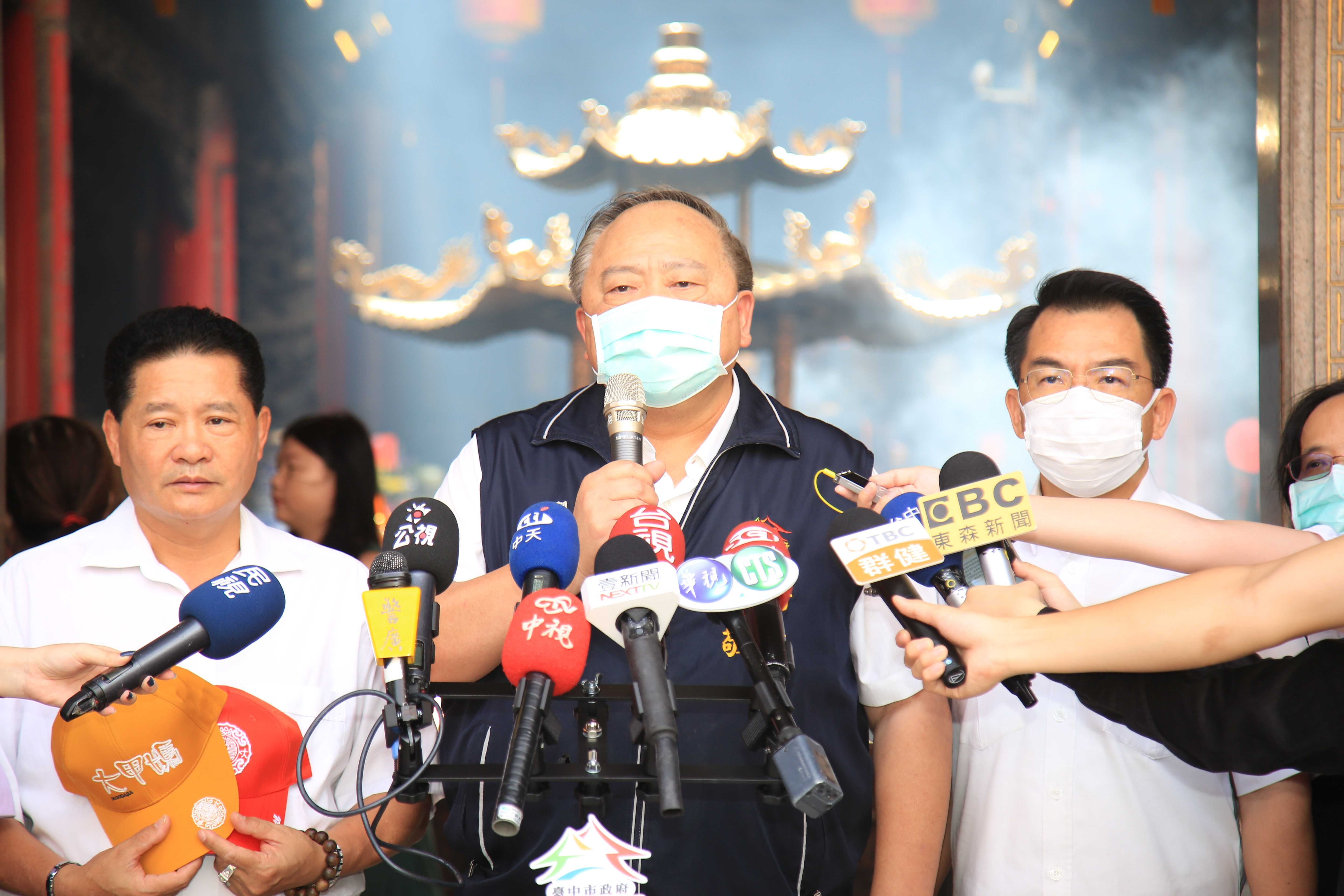 台灣新冠肺炎疫情穩定,中央已宣布6月7日起各項防疫措施解禁,行政院內政部也在6月8日來函宣布宗教集會活動即日起解禁,大甲媽遶境為解封後首場大型宗教活動,陳副市長今日率專案小組前往大甲鎮瀾宮,與鄭副董事長共同宣布相關防疫措施,盼信徒協助配合防疫。