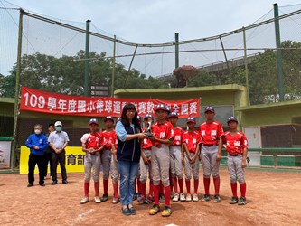 國小軟棒球聯賽全國賽自4月26日起在金龍、東英、萬壽、櫻花及上楓棒球場等5地開打,全台53支優秀隊伍齊聚台中。歷經7天精彩激戰,賽事今(2)日圓滿落幕,市府運動局主任顏蔚雯到場為獲得冠軍的高雄市中正國小、亞軍的新竹市東園國小頒獎並肯定球隊教練及小將們的優秀表現。