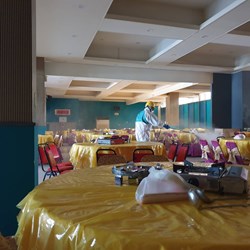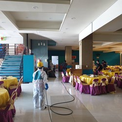 環保局指出,針對該個案足跡曾至沙鹿,沙鹿區清潔隊今日立即出動水霧式消毒車及四位清潔隊成員,以稀釋過的250公升漂白水,於金福華餐廳周邊道路進行公共環境消毒。環保局表示,防疫消毒大隊每月執行1775處人潮聚集場所戶外公共環境消毒作業,因疫情升溫,防疫消毒大隊即日起將於每周加強執行交通場站(如台中火車站、高鐵台中站、朝馬轉運站、機場)、大型營業場所(如好市多、家樂福、新光三越、大遠百、中友等百貨業或量販店)、人潮聚集民生熱點(如逢甲夜市、一中商圈、市場)、觀光景點(如中央公園、后豐鐵馬道)等209處高風險場域防疫消毒工作,盡力防堵疫情擴散。