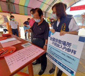 民政局長吳世瑋提醒,全市各宗教團體至6月8日前,各項宗教活動暫停辦理;寺廟、教堂(會)等宗教場所並暫停開放民眾進入,若能落實實聯制、全程佩戴口罩、禁止飲食、加強清消及不群聚的情況下,可於宗教建築物外廣場、廟埕等空曠地點參香、禮拜。此外,宗教場所周邊2公里內進行交通管制,大型遊覽車禁止進入及停放,如非屬宗教活動的遊覽車,經主管機關核准者不在此限。(5/21*8)*民政局