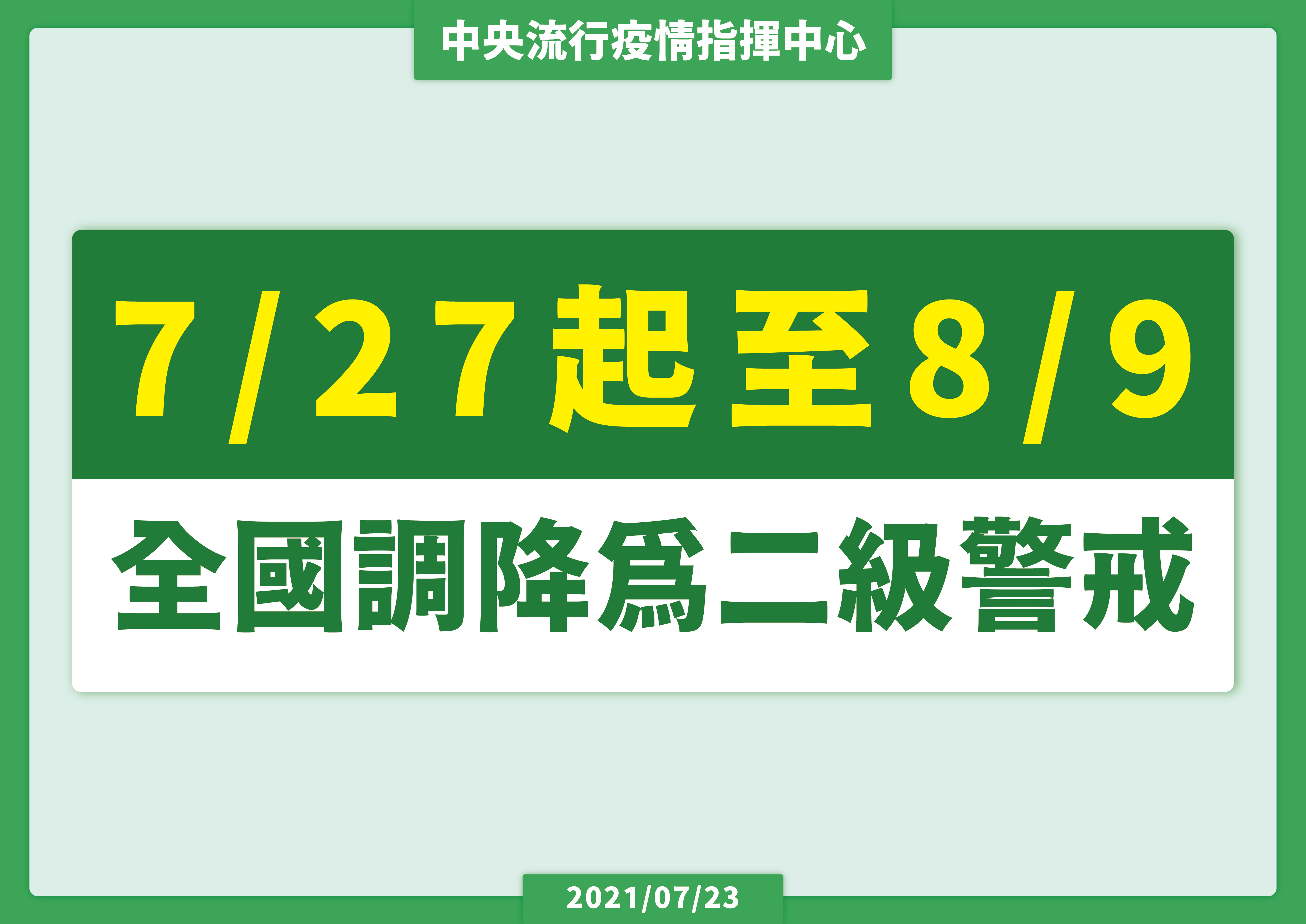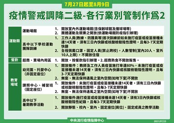 0727起調降疫情警戒標準至第二級警戒