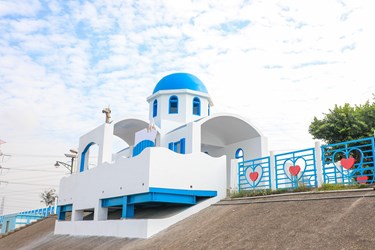 水利局說明,「台中市龍井排水及鄰近排水環境改善工程」編列工程經費278萬8,000元,沿著龍井排水旁海岸線,將水利設施融入如白牆藍瓦、渾圓圍牆、石板街道、柱式建築等希臘元素設計,藉由浪漫純美的希臘地中海風格、3D彩繪水利構造物美化,積極改善排水環境景觀,並串聯自行車專用道,讓遊客有停留觀景點,欣賞漁港之美,滿足民眾觀光遊憩需求,朝「小希臘」區域整體環境目標發展。