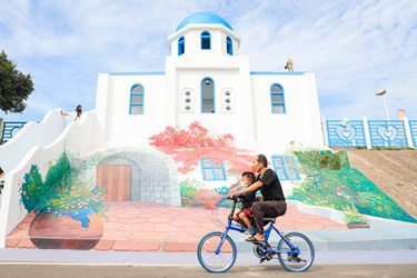 台中市政府積極活化地方觀光景點,在龍井區百年歷史的麗水漁港推動景觀改善工程,利用藍、白色調美化周邊廊道及休憩區,營造美麗地中海式景觀,並延伸自行車道、新設跨越排水橋梁,在疫情影響下,讓市民隨時秒飛「小希臘」,感受水岸環境改造的魅力。市長盧秀燕今(4)日表示,麗水漁港是最適合打卡、結婚的地方,歡迎全世界民眾來旅遊、騎腳踏車,感受浪漫地中海風情。