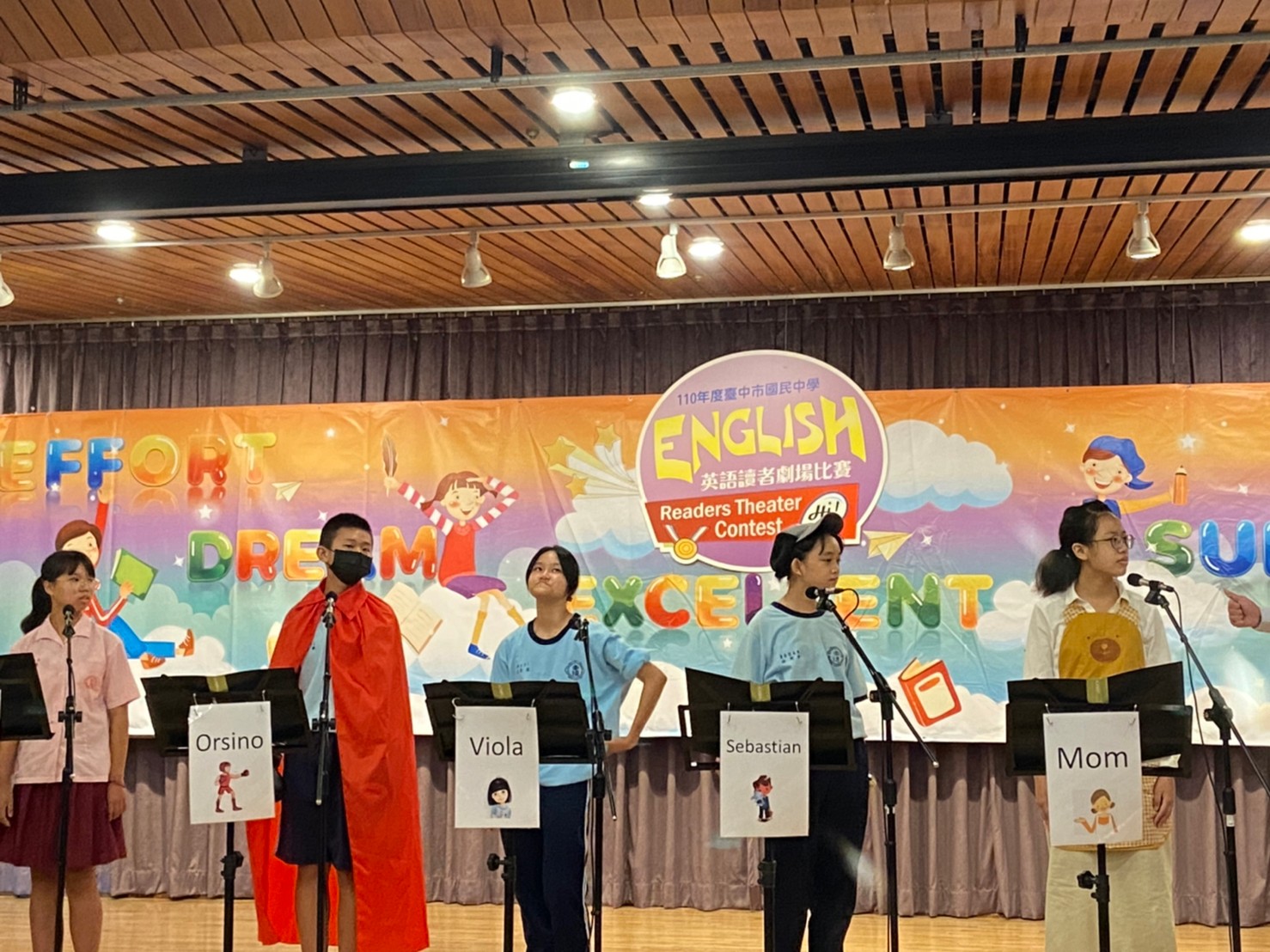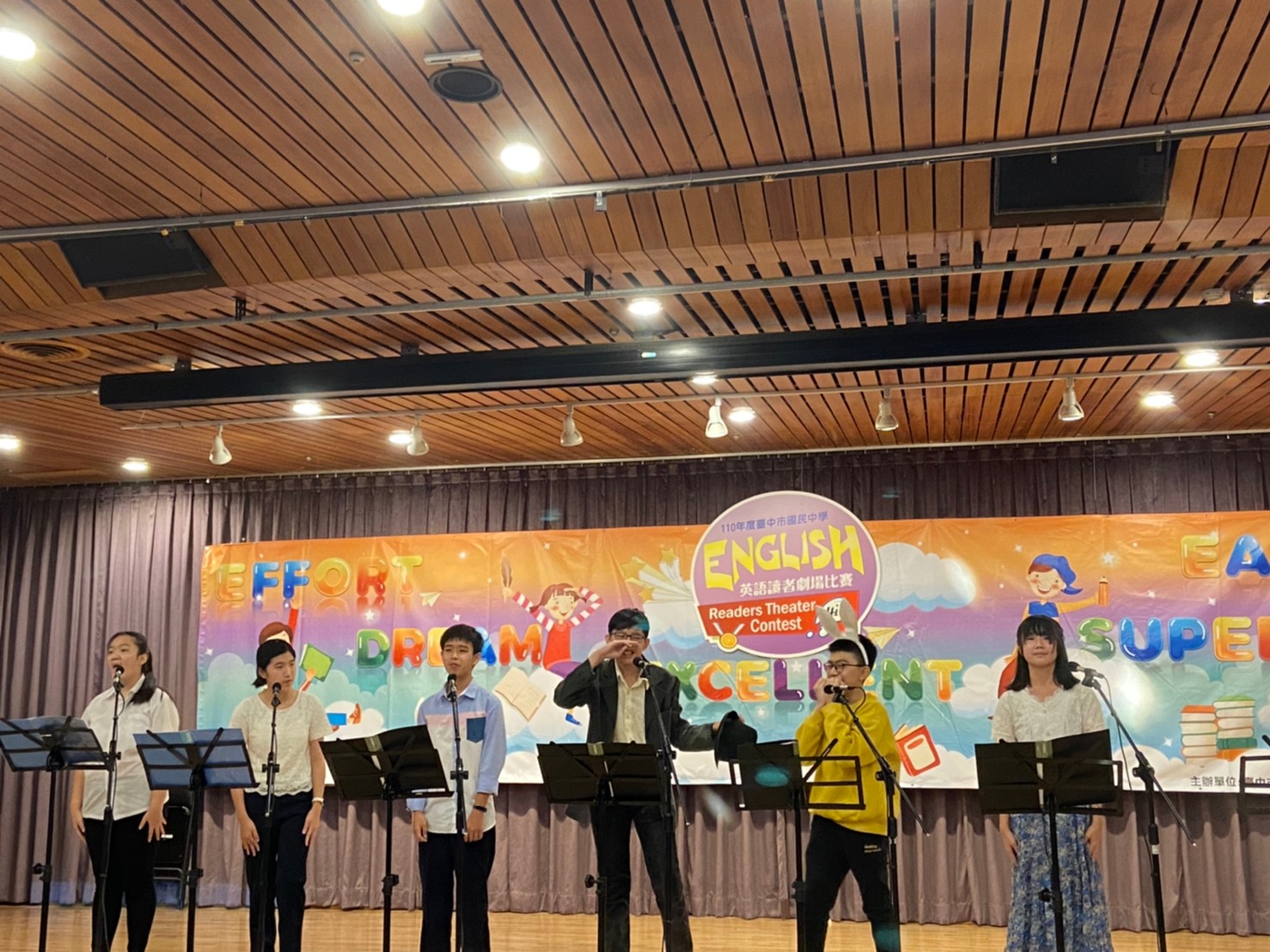 台中市政府教育局積極推廣英語教育、打造英語學習環境,今(4)日在西區大墩文化中心舉辦「台中市國民中學學生英語讀者劇場比賽」,總計47所國中、400多位學生參加,比賽為期兩天,學生們以標準的發音及活潑的語調呈現故事題材,讓觀眾宛如劇本中的角色一樣感同身受。