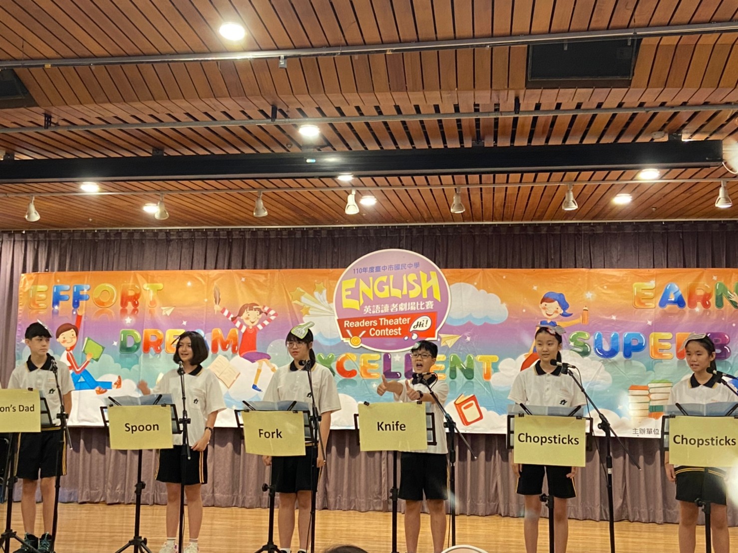 參賽學生分享,讀者劇場比賽是能跳脫制式英文課,又能學到英文與團體默契的活動,雖然念劇本的過程仍需查單字,但因為劇本有故事性質,讓她欲罷不能;此次參加讀者劇場比賽不只讓英文變得精進,更學會與別人合作,從一開始拿到劇本的興奮感,到一起練習的時候越來越有默契,讓她有滿滿的成就感。