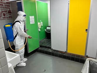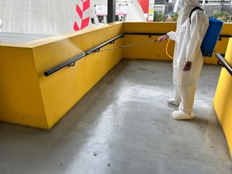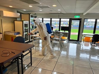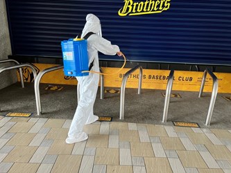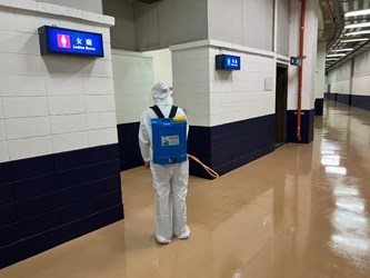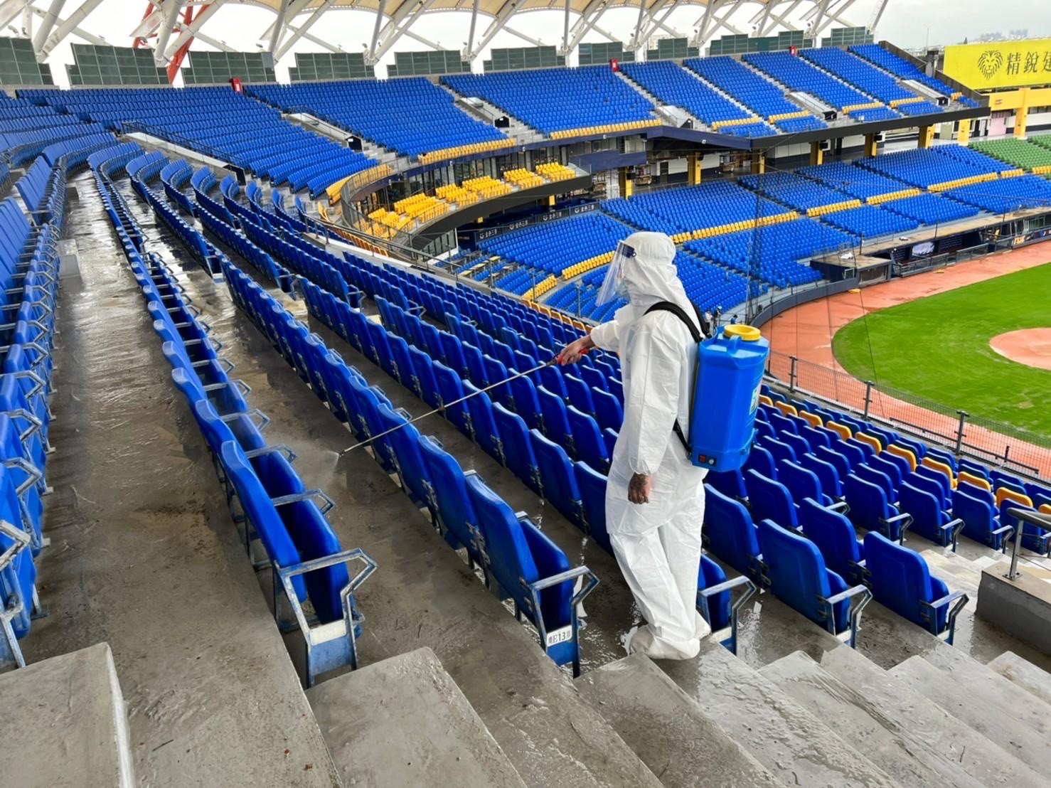 中信兄弟42日起將在台中主場洲際棒球場進行中華職棒33年開幕戰,因應近期疫情升溫,讓球迷安心觀賽,台中市政府運動局長李昱叡表示,市府已請洲際棒球場營運單位清潔消毒場區,球場管理單位午資公司積極大規模清消,包括座位區、走道、廁所、電梯、售票口、牛棚等,落實防疫,維護球迷及工作人員的安全。