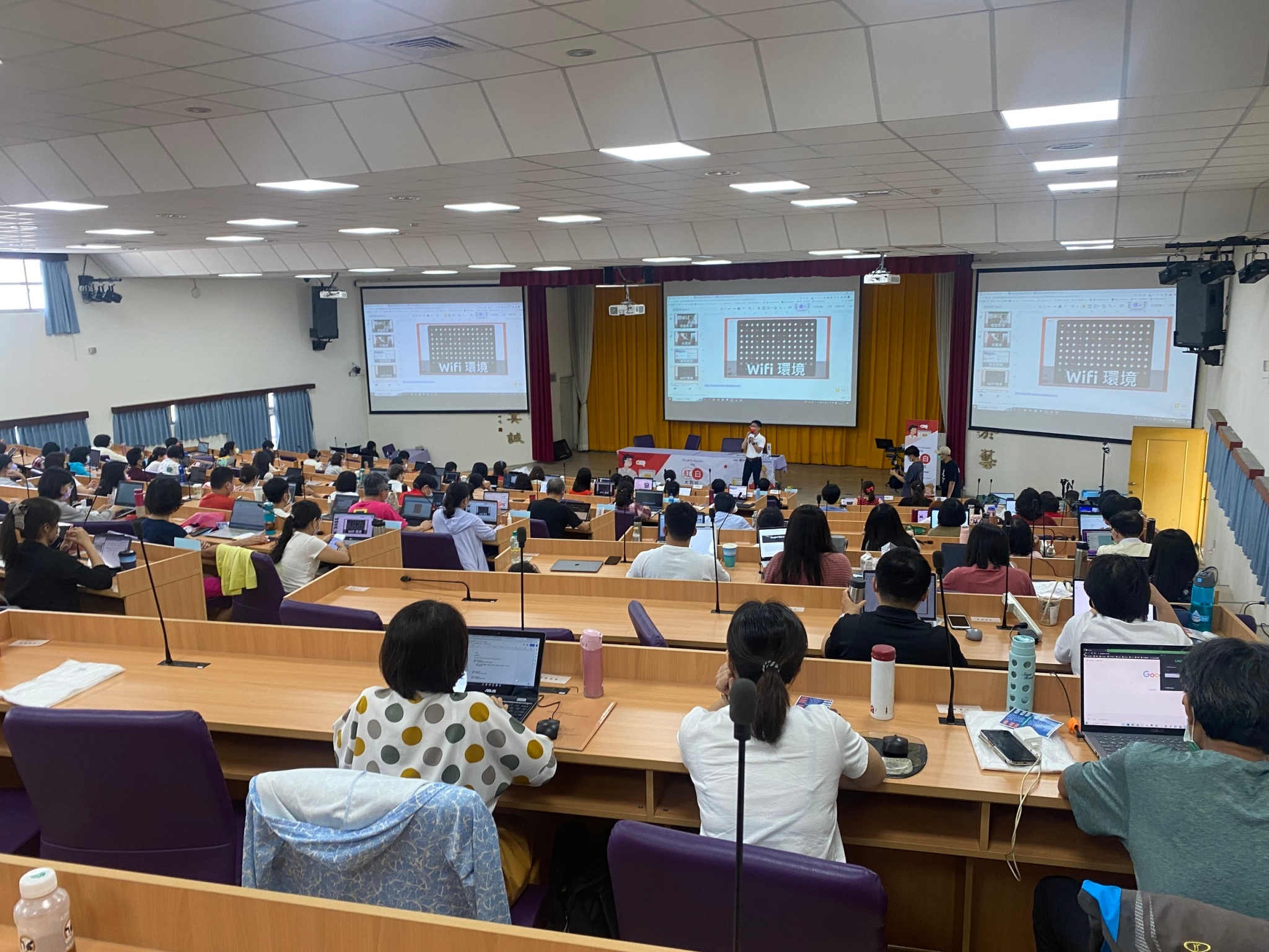 台中家商和Google教育者社群GEG辦理第一屆紅白大對抗,日前在台中家商盛大登場,邀集全台老師與業界翹楚宏碁股份有限公司(Acer)及高通股份有限公司(Qualcomm)共襄盛舉,全國限額200人,開放報名當天即秒殺額滿,豐富的研習課程內容,打造雲端數位工作,提昇教師駕馭行政與教學的能力。