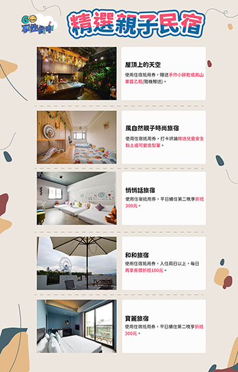 觀旅局說明,今年度推出「GO!享住台中」千元住宿抵用券抽獎,活動搭配逾百家安心旅宿,讓民眾認識更多台中特色主題旅宿,不論是暑假 Fun 心玩、親子友善、精選平價、山海屯都等,都能依主題遊覽各區店家獨家優惠。也呼籲手中仍持有「GO!享住台中」千元住宿抵用券的幸運兒,8月底前搭配中央悠遊國旅補助,即可享有全國最高優惠2,300元折扣,歡迎大小家庭至台中住宿旅遊樂玩一夏,優惠享最多。