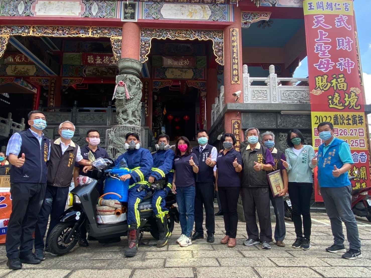 台中市婦女防火宣導大隊副大隊長、市議員吳瓊華表示,玉闕朝仁宮長年熱心公益,這次捐贈救災摩托車及裝備器材,對於各項消防及救災勤務執行上都能充分發揮作用。