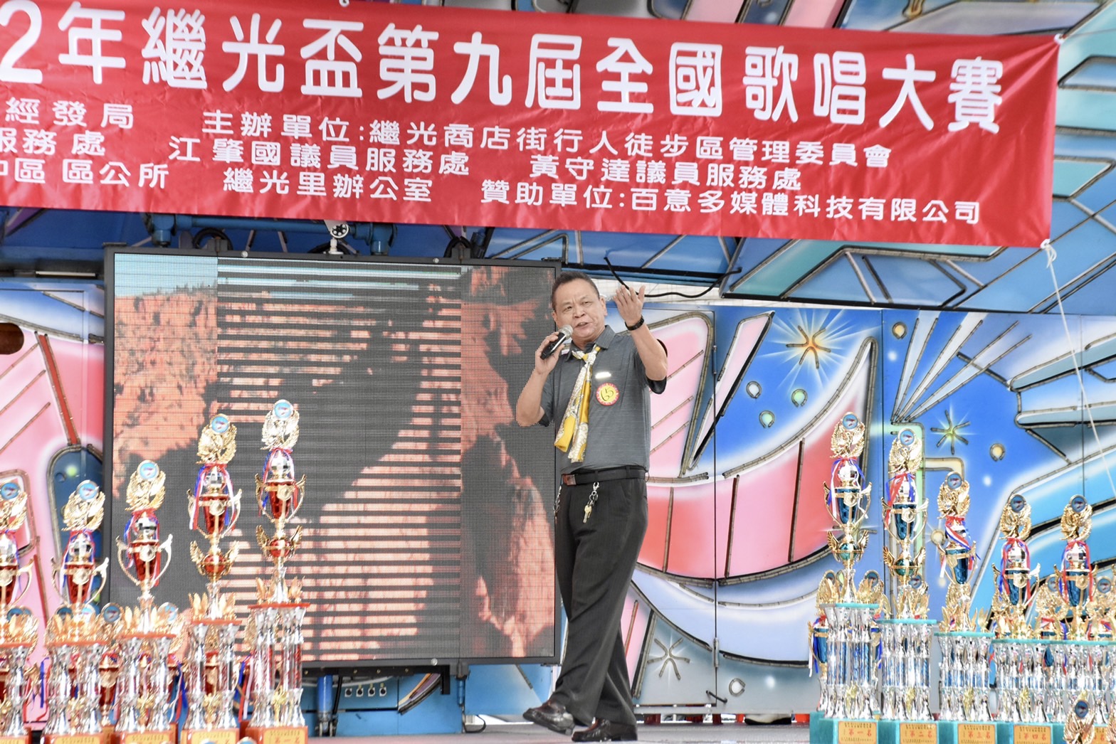 推廣全民休閒活動、活絡商圈,「第九屆繼光盃全國歌唱大賽」今(6)日在繼光街和成功路街口盛大登場,總獎金超過3萬元,吸引大批民眾報名,比賽特別設立長青組、社青組,讓更多年齡層、所有熱愛唱歌的民眾都有發揮舞台,新住民及外籍移工也踴躍報名,聽見更多來自不同地方的美聲;活動周邊也舉辦在地文化市集,有繼光街當地的手工甜點,還有台中在地特產麻薏奶酪特色甜點,盼透過活動讓更多人認識繼光商圈,促進繁榮,同時提倡民俗文化技藝,豐富人文素養。