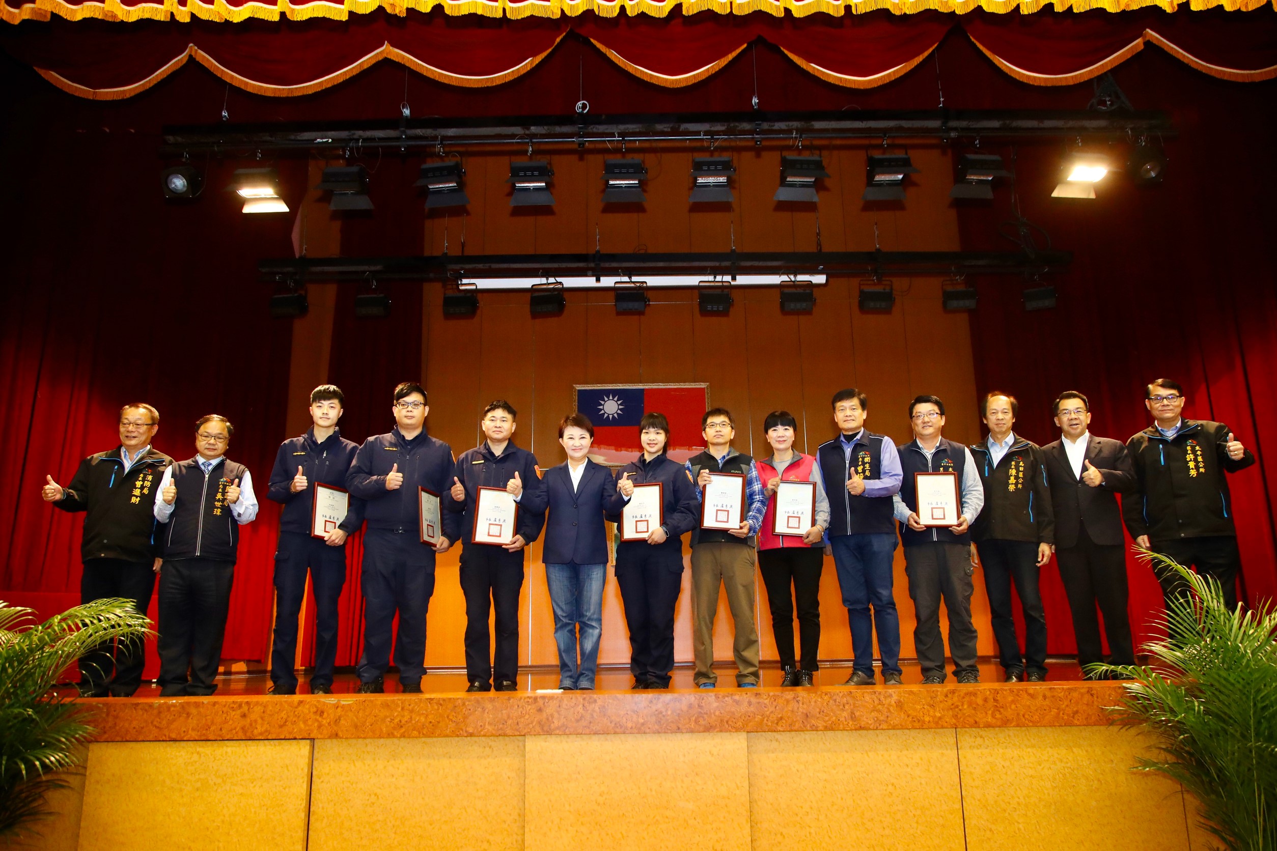 台中市長盧秀燕今(18)日於市政會議頒獎肯定有效通報民眾違反新冠肺炎居家檢疫的人員,感謝他們為防疫所做的努力。盧市長表示,因為有地區的里長、里幹事第一時間通報違反居家檢疫的民眾,才能為台中的安全把關,今日特此表揚,感謝他們守護市民的健康!