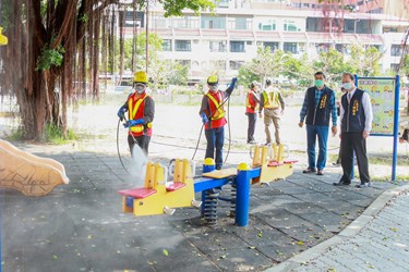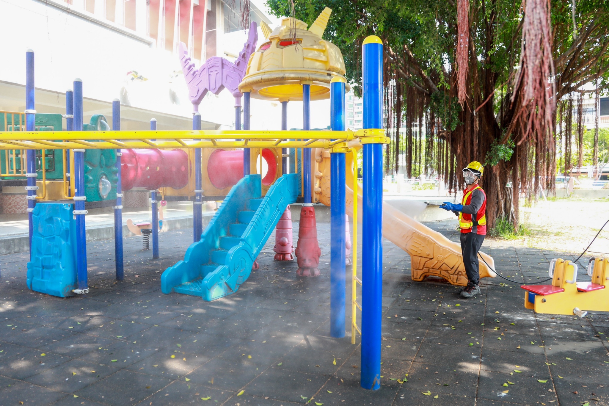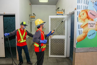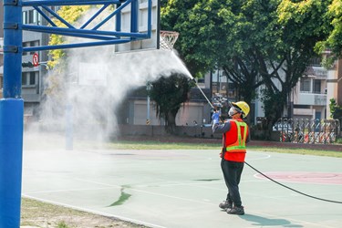 楊局長表示,此次由環保局與教育局通力合作,環保局負責學校周邊公共環境消毒,提醒學校也需加強經常接觸的門把、桌面、電燈開關、或其他公共區域消毒,維護學生健康。