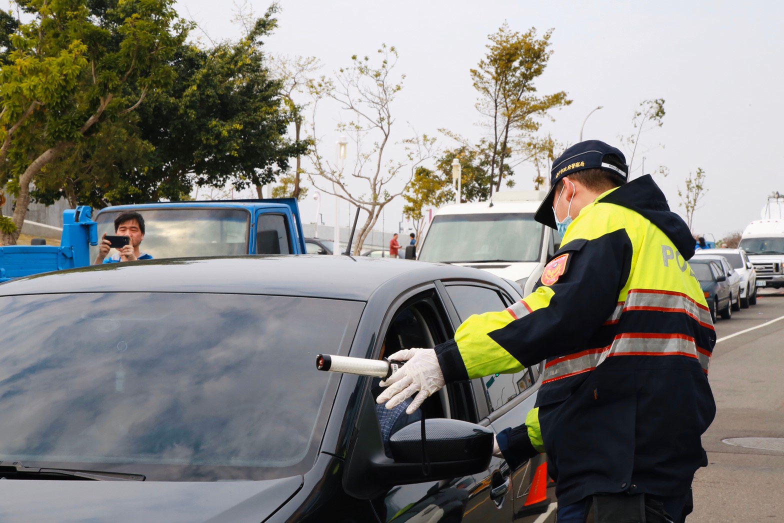 因應新冠肺炎疫情,內政部長徐國勇昨(5)日宣布暫時取消全國性酒測,引發民眾擔憂,台中市政府今日照常執行酒測臨檢,酒駕零容忍,第六分局交通組長蔡榮錠表示,「酒駕沒有防疫假」,市府加強各項防疫措施,取締勤務全天不間斷,請民眾無須擔心、酒駕者更別心存僥倖。