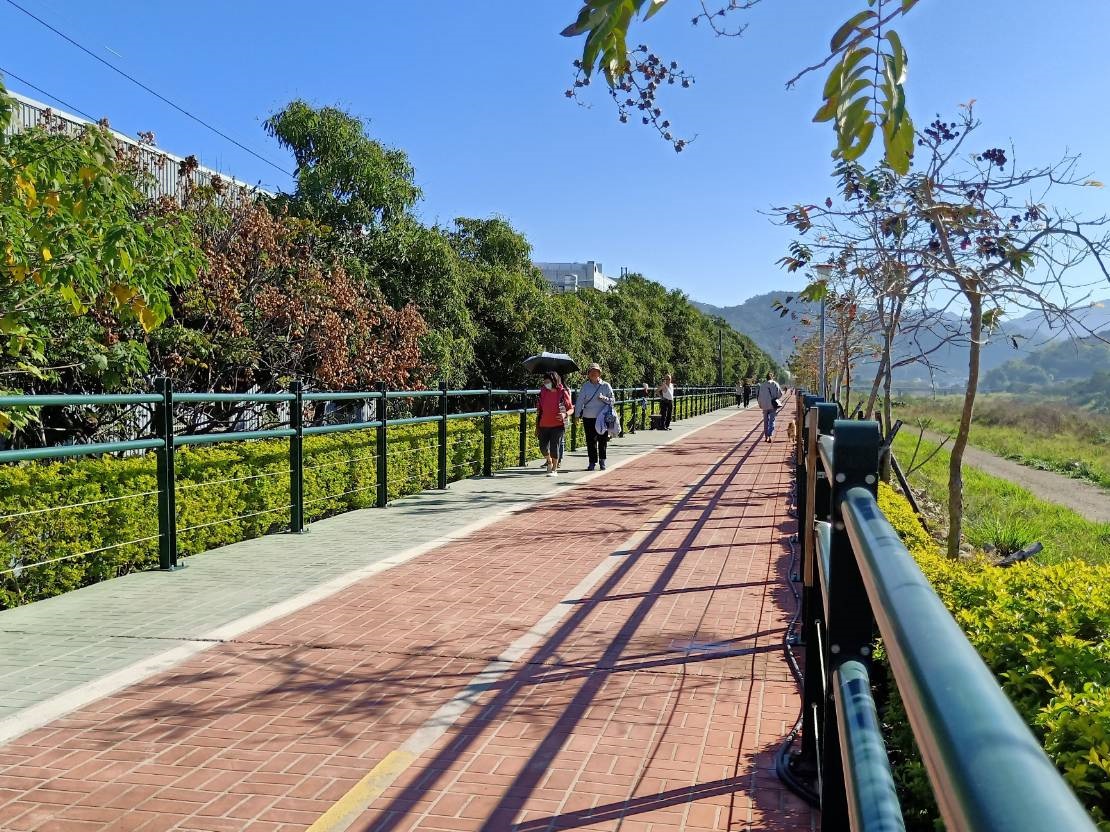 她提到,草湖溪自行車道沿著溪畔堤頂規劃,沿線可欣賞河畔風光,中途經過竹仔坑生態園區,園區內不僅有豐富的生態資源,亦有一條林蔭綠廊,提供結合河岸景觀及生態知識的知性旅程。