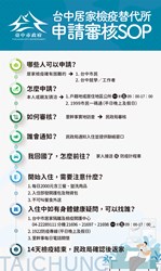 民政局長吳世瑋表示,替代所採申請審核制,對象包含台中市民及在台中求學、工作者,有需求者本人或親友,可洽戶籍地或居住地區公所申請(周一至五9:00-17:00),平日晚間及假日可洽1999台中市民一碼通,民政局將指派里幹事實地訪查,民政局審核通過後會通知入住;入住期間每日收費2000元,含三餐及盥洗用品,入住即發關護包及物資包,不可叫餐食外送,里幹事每日都將電話關懷。