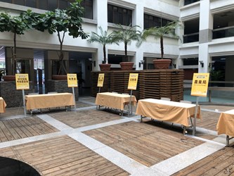 市府秘書處表示,台灣大道及陽明市政大樓原由各機關在1樓聯合服務中心及各機關所在樓層,提供各項諮詢與洽公服務,為因應疫情,整合市政大樓各機關服務機能,於1樓通風較佳的中庭設置聯合洽公專區,集中提供各項服務,可減少人員至2樓以上樓層走動或搭乘電梯機會,降低非必要接觸風險。