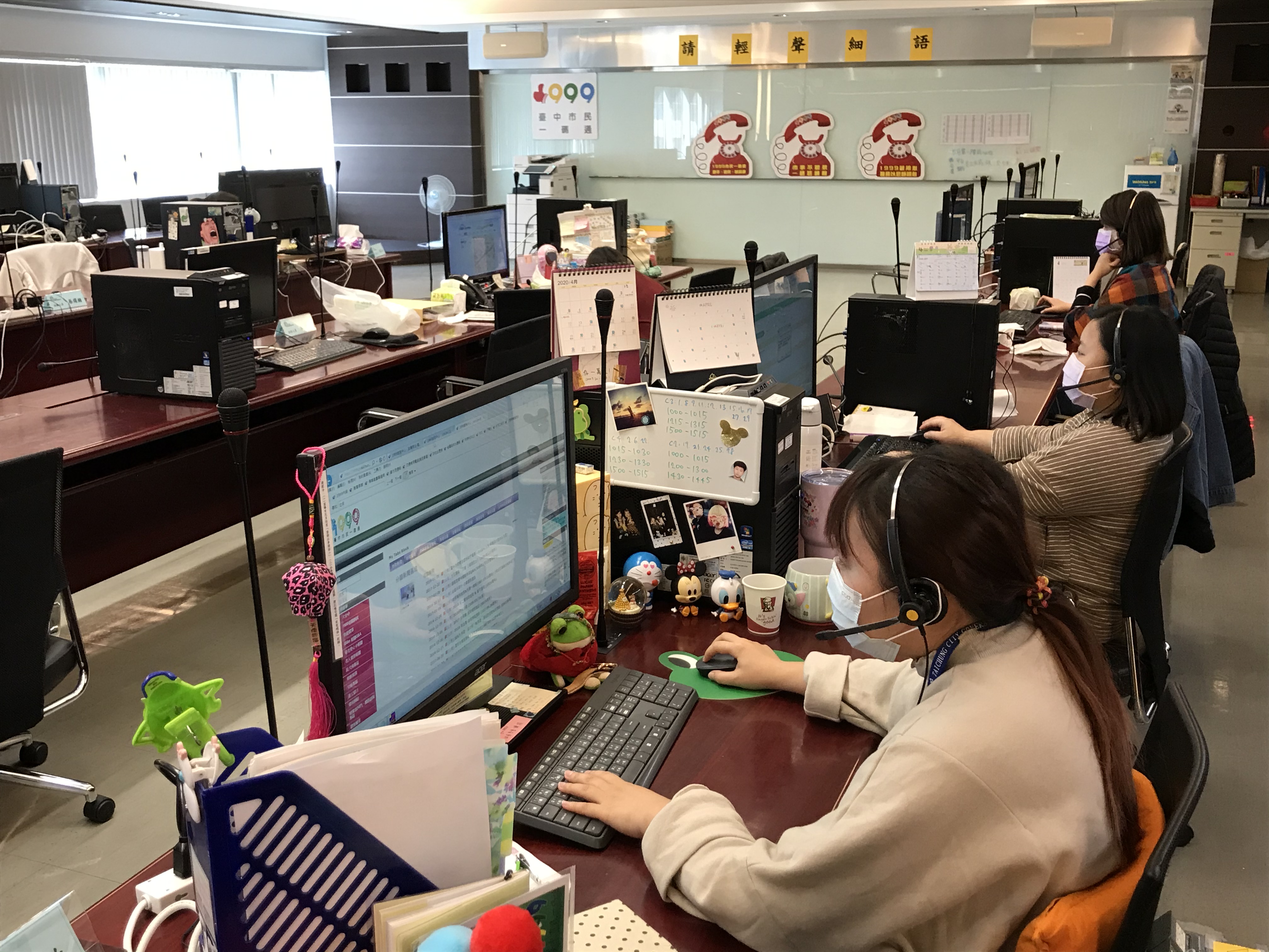 因應新冠肺炎疫情,台中市政府為確保1999市民專線服務不中斷,超前部署設置「第二話務中心」,即(14)日起實施話務人員分區兩地上班,降低群聚感染風險,持續提供市民完善的諮詢服務管道。