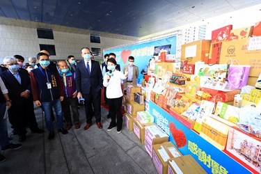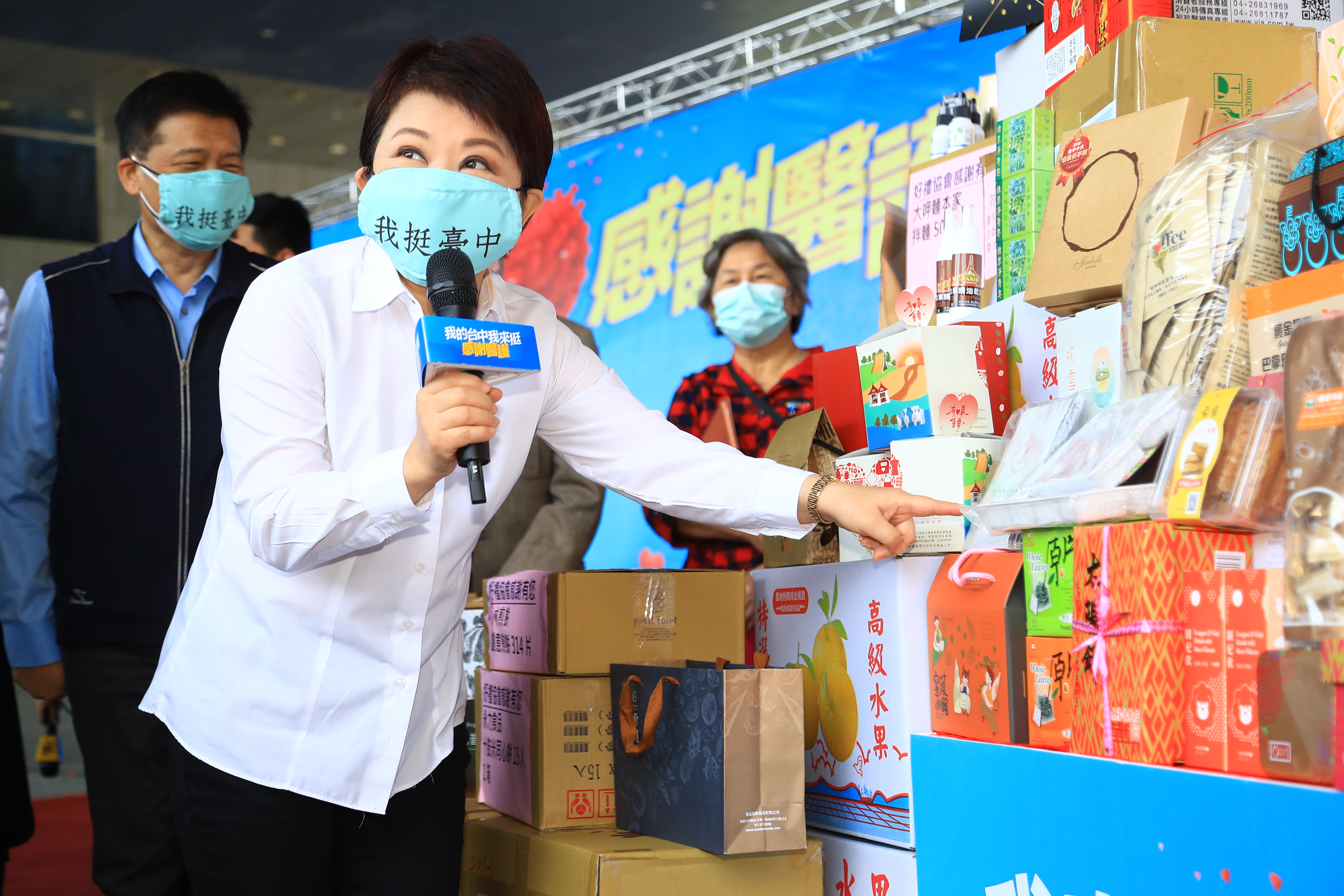 新冠肺炎疫情持續延燒,為感謝醫療人員堅守崗位,台中市超過80家企業、團體主動捐贈點心、飲料挺醫護,總計約50項、4萬5000個物資,透過行動為醫護加油打氣。市長盧秀燕今(15)日深深鞠躬向第一線醫護人員致敬,並感謝企業、團體的暖心義舉,期盼同心協力,一起打贏抗疫這場仗。