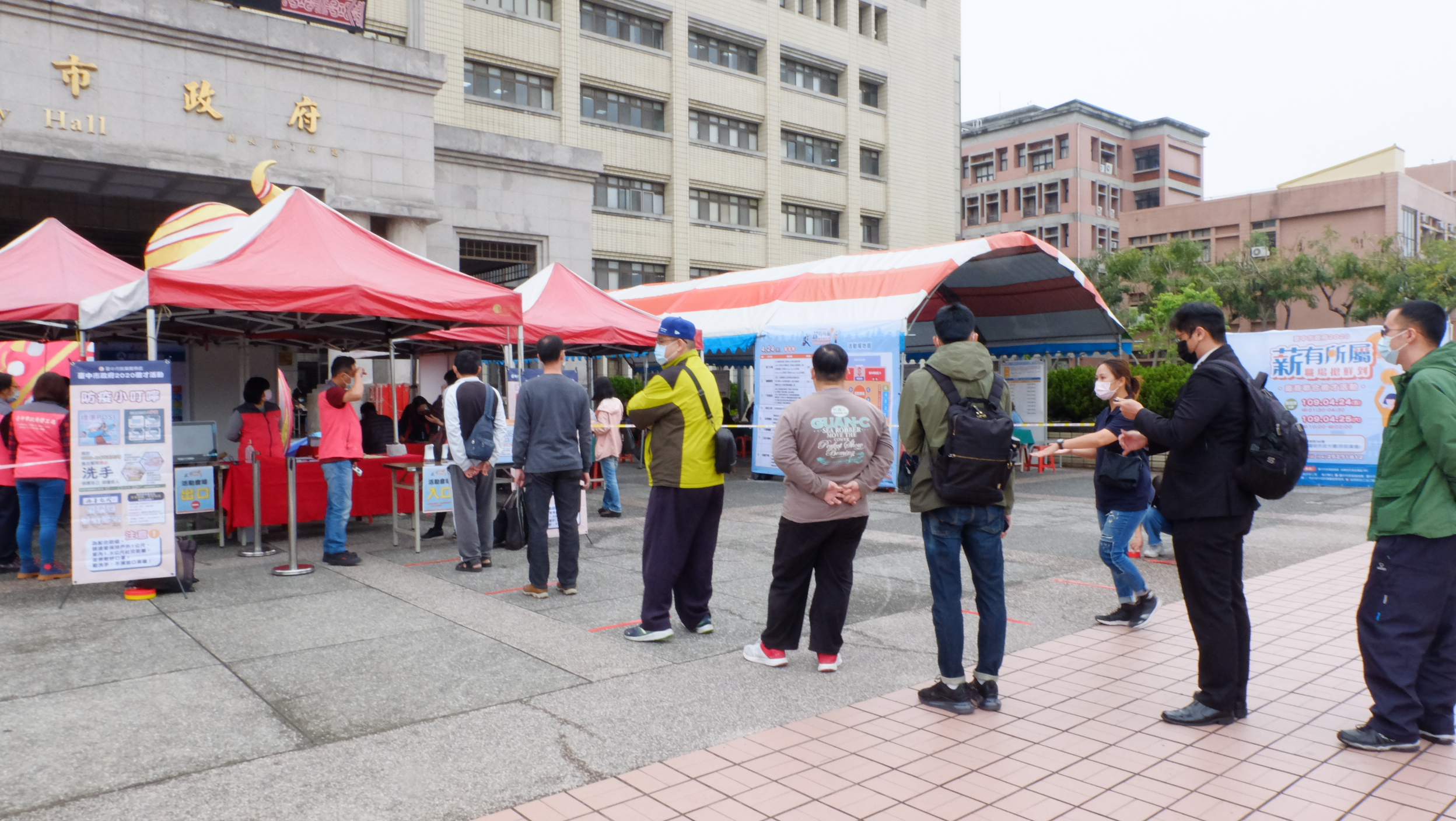 因應新冠肺炎疫情,為協助失業者轉職,台中市政府勞工局今(24)明兩日在陽明市政大樓府前廣場舉辦製造業、科技業與服務業聯合徵才活動,首日徵才邀請千附、旭東、正証光機械等8家優質企業設攤,提供超過208個工作機會,廣招各類人才,吸引轉職、求職民眾及新鮮人參加,投遞履歷累計256人次,初步媒合率近5成。