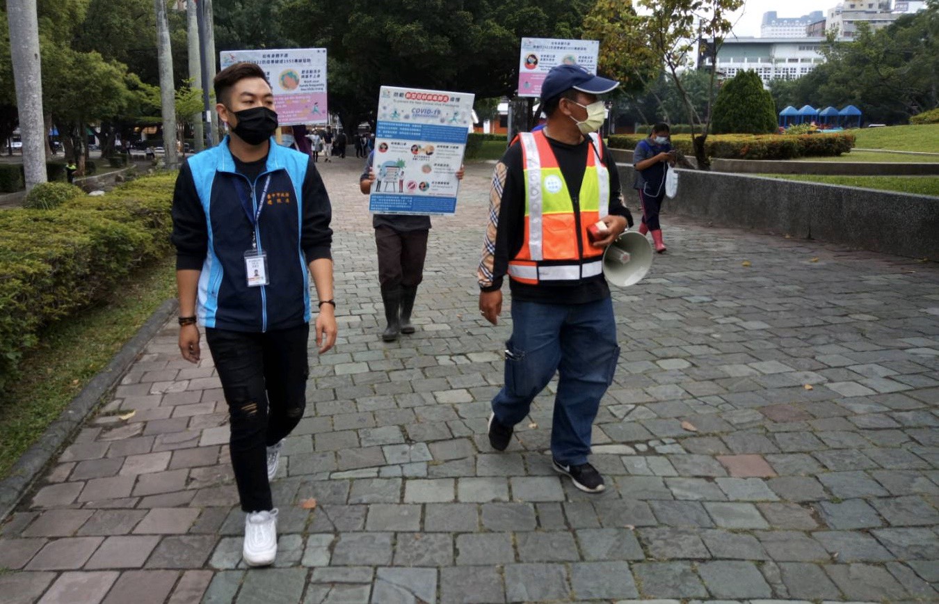因應新冠肺炎疫情變化,台中市政府建設局超前部署各項防疫作為,於台中市各重點公園增設防疫宣導告示,並選定人潮較多的湧泉公園、新都生態公園、台中公園、中正公園、三信公園、豐樂雕塑公園及彩虹公園等7處亮點公園,每週末進行走動式防疫宣導,提倡民眾正確防疫觀念,共同維護市民安全。