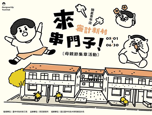 勞工局指出,除光復新村青創基地辦活動外,5月1日至6月30日西區審計新村青創基地也同時舉辦「來~來~來~『來審計新村串門子』」集章抽獎活動,只要到審計新村青年店家領取集章地圖(由在地青年店家-愚室實驗所yushilab設計,融合白磚紅瓦建築特色),集滿17個青年店家印章圖騰,即可至當週的抽獎店家玩抽獎,歡迎民眾揪親朋好友到審計新村一路玩到6月底!