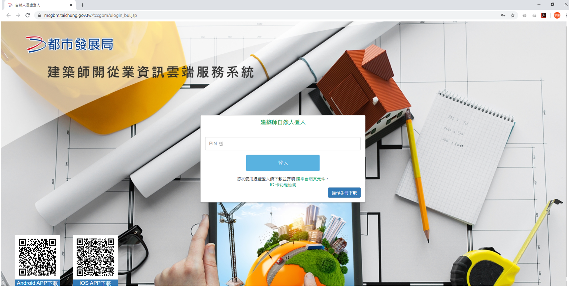民眾可由台中市政府都市發展局/建管便民服務網項下,進入「建築師開從業資訊雲端服務系統」登入申請,網址:https://mcgbm.taichung.gov.tw/tccgbm/ulogin_bul.jsp 。(5/20*15)*都發局