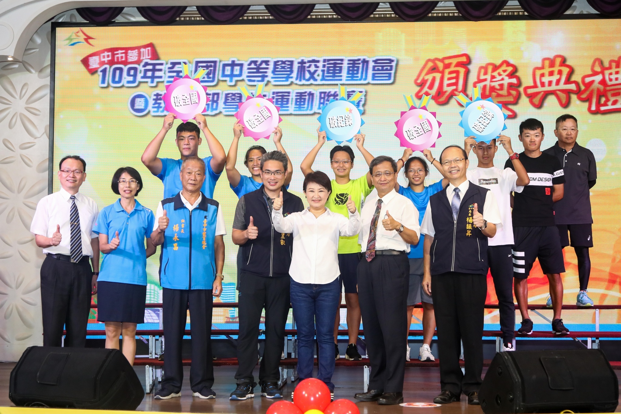 今年教育部主辦全國學生聯賽,台中學校大放異彩,其中,東山高中在籃球、排球和壘球聯賽場上列入全國前四強、中山國中也拿下棒球聯賽硬式組亞軍;全國中等學校運動會台中市代表隊亦表現亮眼,贏得金牌75面、銀牌63面、銅牌84面,更有10人創大會紀錄、6人破大會紀錄、6人破全國紀錄、6校勇奪團體總錦標第一名。