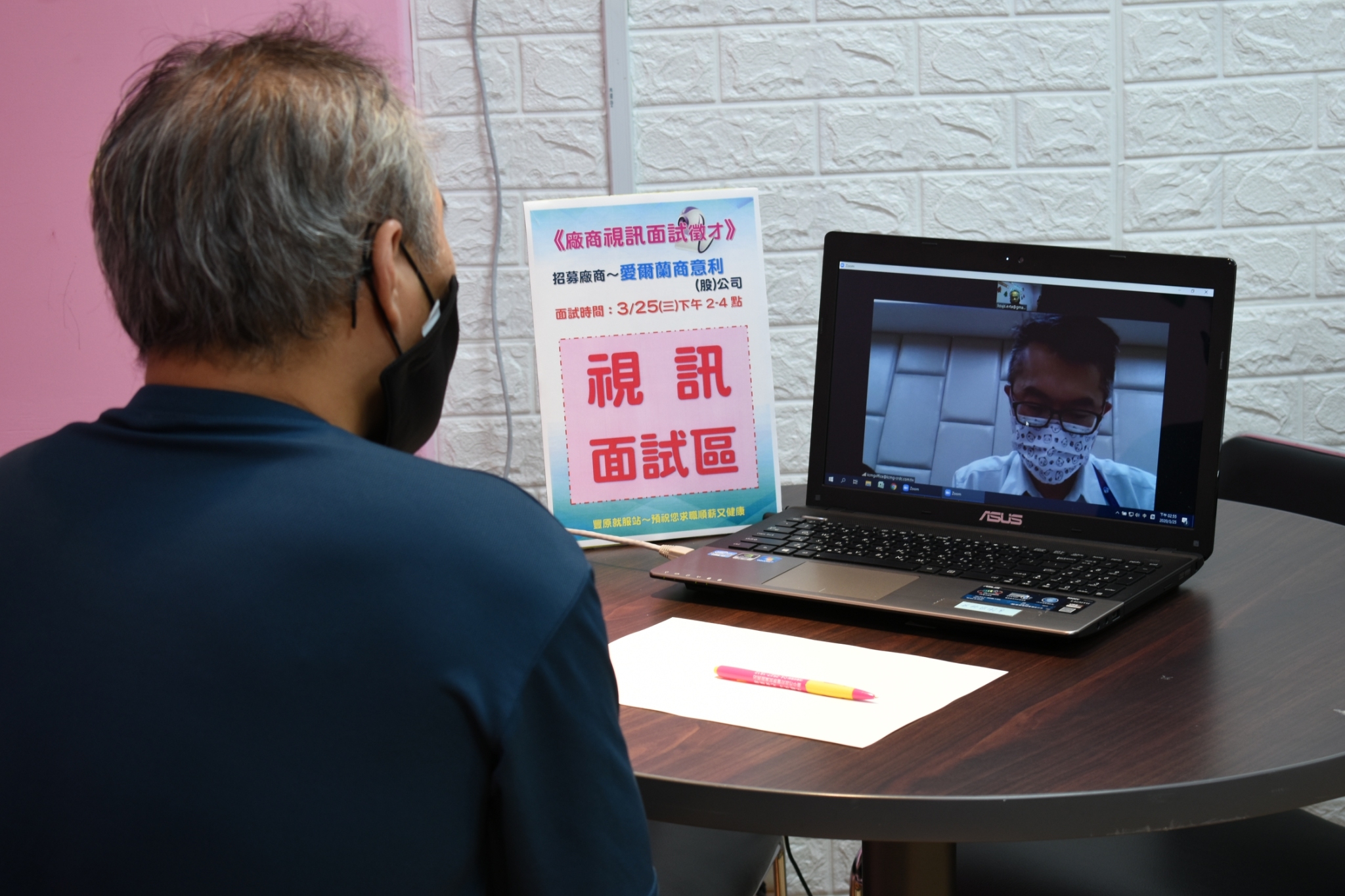 中高齡者透過臺中市就業服務處資訊設備進行視訊面試