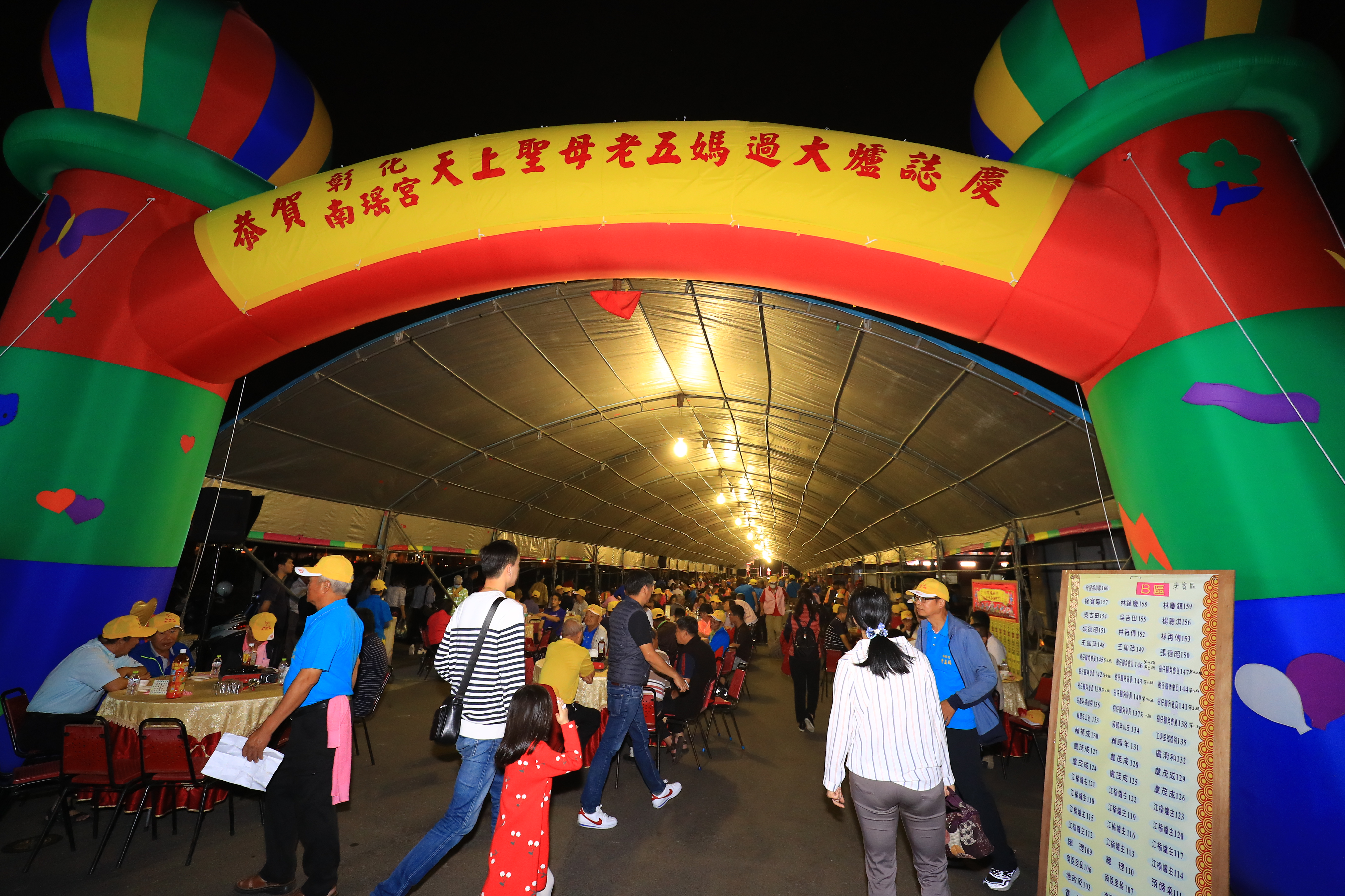 一年一度的「值角」福宴今(24)晚熱鬧登場!此次輪到彰化南瑤宮老五媽樹仔腳角(第5角)籌辦,在南區樹德里正德福德祠宴請其他媽祖會角頭會員,超過1600人、近200桌同場饗宴;市長盧秀燕表示,老五媽擁有超過140年歷史,值角宴會每年盛大舉辦,相信媽祖有看到大家的用心,她也祈求媽祖保佑國泰民安、市政順利。