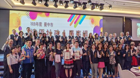 109年度台中市績優社政人員表揚,今(16)日在好運來洲際宴展中心舉行,社會局長彭懷真出席頒獎表揚134名績優社政人員,包含特殊貢獻獎1名、資深敬業服務獎35名、服務績優獎98名。彭局長感謝每位堅守崗位付出的社政人員,傳遞市府對市民的關愛,讓市民感到安心、放心。