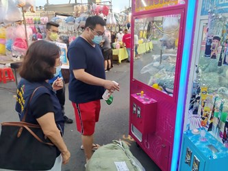 經發局表示,近日本土確診案例攀升且出現感染源不明的本土病例,市府以防疫為第一要務,昨日持續派員至夜市稽查各項防疫措施,太原觀光夜市及旱溪夜市皆已啟動容留人數管制,當人數超過管制量時將管制民眾進入,並在出入口有專人量測體溫及備有酒精供民眾消毒,民眾及攤商配合情況良好。