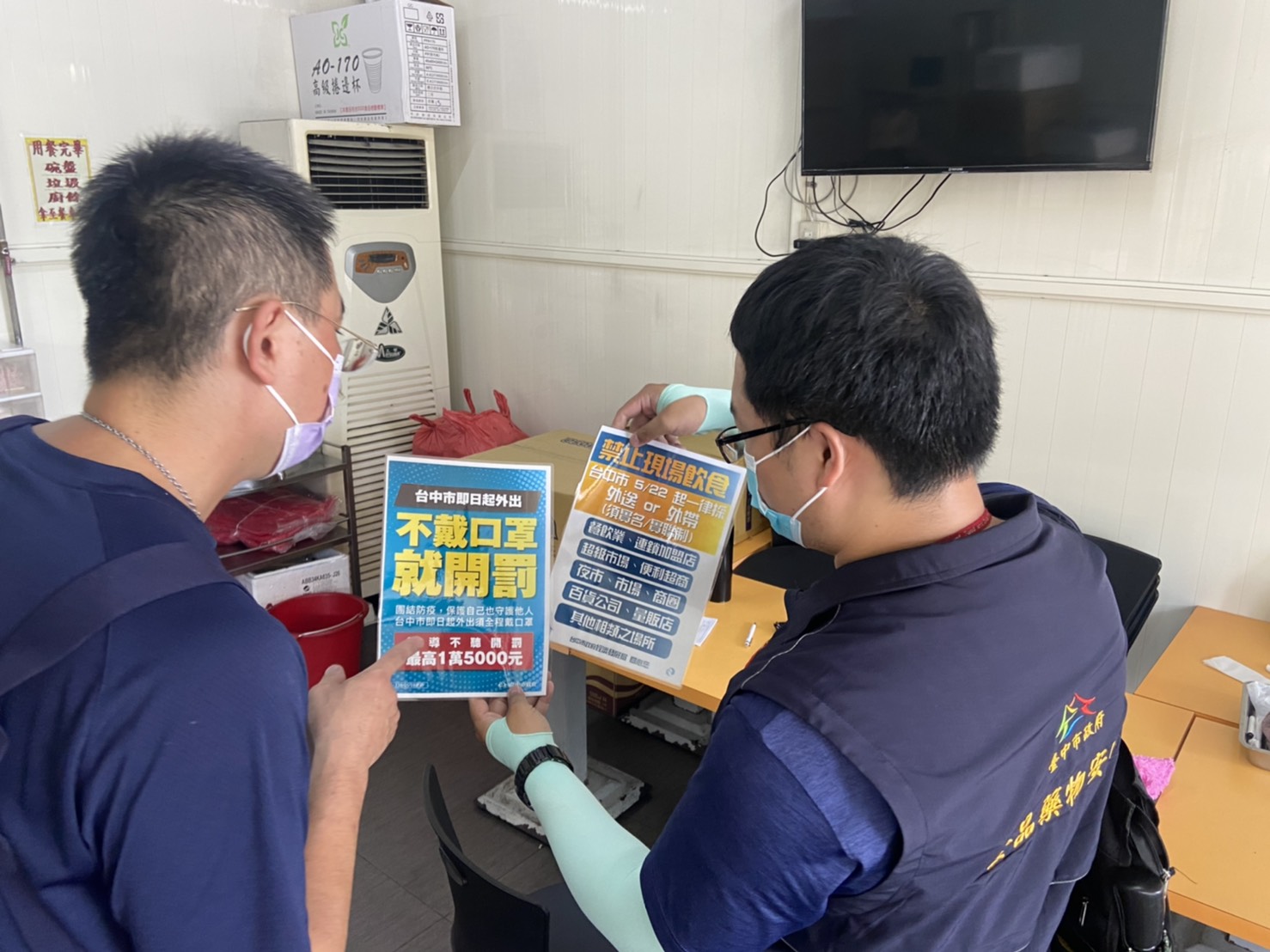 因應新冠肺炎(COVID-19)疫情升溫,台中市政府衛生局日前加強稽查食品業、藥局、藥妝店、零售醫療器材商、中藥販賣業等營業場所,共查核轄內566家次,確認民眾及業者皆依規佩戴口罩,並遵守外送、外帶實聯制等防疫措施。衛生局提醒,至6月8日止台中市禁止現場飲食,如業者違反規定且拒絕改善,將依傳染病防治法規定,處3000元以上、1萬5000元以下罰鍰。