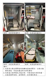 強化防疫救護同仁執勤安全,台中市政府消防局發揮巧思,全國首創防疫救護車「分艙分流」,改裝防疫救護專車,於後艙座位及擔架床間,以透明壓克力板分隔,讓病患於獨立空間內,強化車內安全隔離,節省勤務結束後車內裝備器材消毒時間,提升工作效率,為市民防疫安全把關。