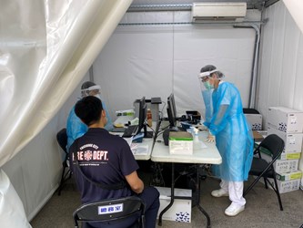 消防局專責救護小隊長顏志軒表示,消防人員一直是防疫最重要的第一線人員之一,每次出勤雖然依照標準SOP著防護裝備與清消措施,但疫苗施打才是自我防護的根本。感謝盧市長將消防弟兄姊妹列為優先施打疫苗對象,讓他們出勤更安心,保護自己也保護家人。