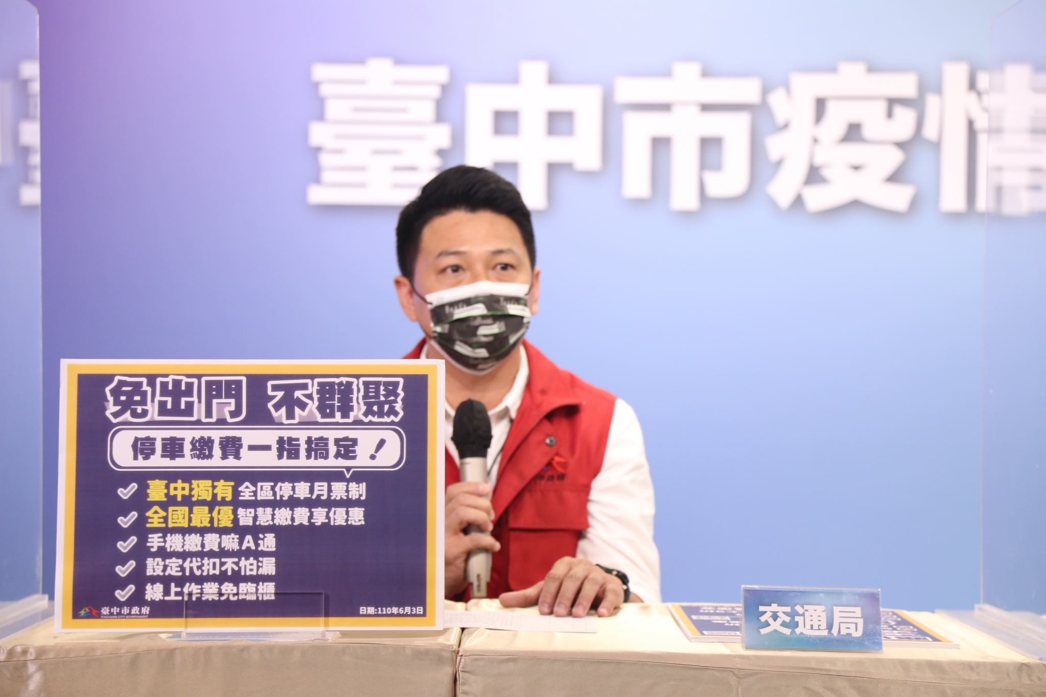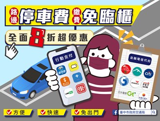線上繳費免出門還打折!國內疫情嚴峻,台中市政府交通局與行動支付、金融及電信業者合作,6月10日至8月9日線上繳停車費即享8折優惠,市長盧秀燕今(3)日呼籲市民朋友多使用線上支付停車費、線上購買月票,減少臨櫃群聚風險,防疫又省錢。交通局長葉昭甫也說,這段期間路邊停車費天天打8折,相較部分縣市只有假日免費更優惠,也可避免民眾反而集中周末出門造成群聚。