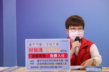 新型冠狀病毒疫情嚴峻,為體恤前線醫護人員辛勞,台中市政府結合各界資源推出「醫護暖心住宿」方案,針對衛生局列冊的第一線COVID-19病患照護醫事人員,自67日起提供免費住宿,目前已預約登記共162夜次。市長盧秀燕今(11)日表示,歡迎符合資格的醫護入住休息,養精蓄銳專心抗疫;此外,市府也全力支援苗栗,已後送77名篩檢陰性的民眾到台中居家隔離,共同抗疫不遺餘力。