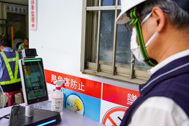 而國光路地下道填平工程今年3月中開工,工程進度順利,施工廠商利用高架鐵路橋下空間設置半室內休憩場域,工地人員進出需透過人臉辨識系統,落實進場管制兼具體溫檢測功能,如溫度超過37.5度以上將發出聲響警告,減少相互接觸機會。