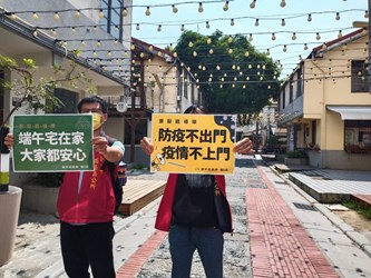 避免端午連假人潮群聚形成防疫破口,台中市政府動員各區公所於轄區熱門景點、宮廟、步道及市場手持告示牌、大聲公呼籲民眾「端午宅在家,你我都安心」!避免疫情擴散,保護自己也保護他人。民政局長吳世瑋表示,各區公所端午連假防疫不鬆懈,前往各區熱門景點等處加強群聚疏導,盼民眾以具體行動共同支持辛苦的第一線防疫人員,一起團結對抗疫情。