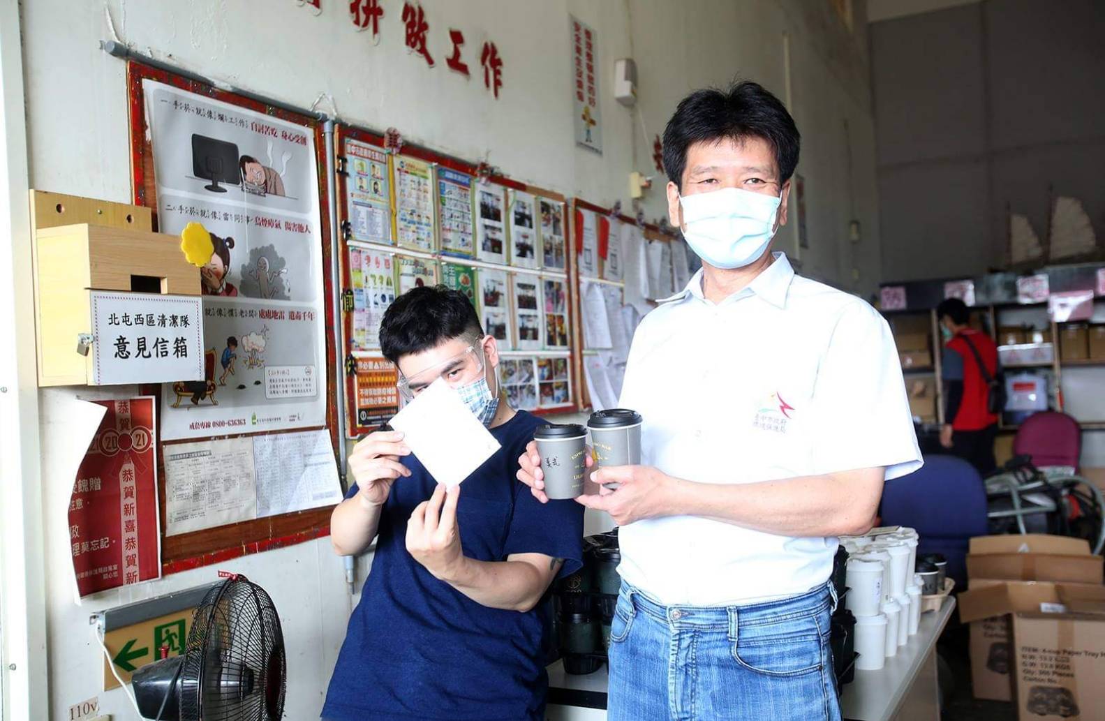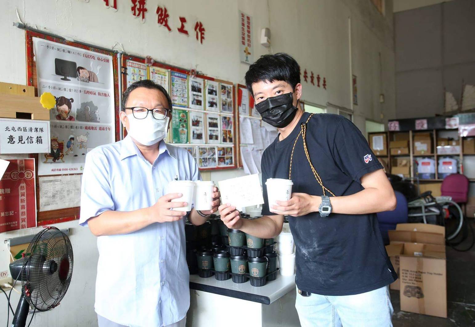 環保局長陳宏益指出,清潔隊平日工作就相當繁忙,加上疫情當前,執行消毒的清潔人員常在炎熱的天氣下背著裝備,拉著管線沿街噴灑消毒,衣服濕了又乾、乾了又濕,辛苦程度外界難以體會,感謝「抗疫共存計畫」咖啡業者看見清潔隊員的辛勞,雖自身無法前往前線防疫,但泡出一杯杯美味的咖啡給清潔人員鼓勵、打氣,貢獻一己之長。陳局長指出,此次送暖到環保局清淨園區,包含西屯、北屯東、北屯西及北區等4個清潔隊,透過拋磚引玉,邀各界「疫起加油」,盼望疫情能夠早日結束,回歸正常生活。
