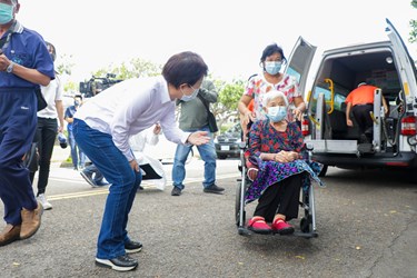 盧市長表示,這一批老人疫苗的注射提供幾項服務,第一、免預約直接發通知單;第二、提供身障不便長輩交通接送服務,台中市85歲以上行動不便曾搭乘復康巴士的身障長輩大概有1400人左右,其中A級的身障長輩(行動不便程度較高)400位,社會局主動電話聯繫關懷協助預約,估計這三天復康巴士接送約90名身障長輩施打疫苗,服務計170趟次。