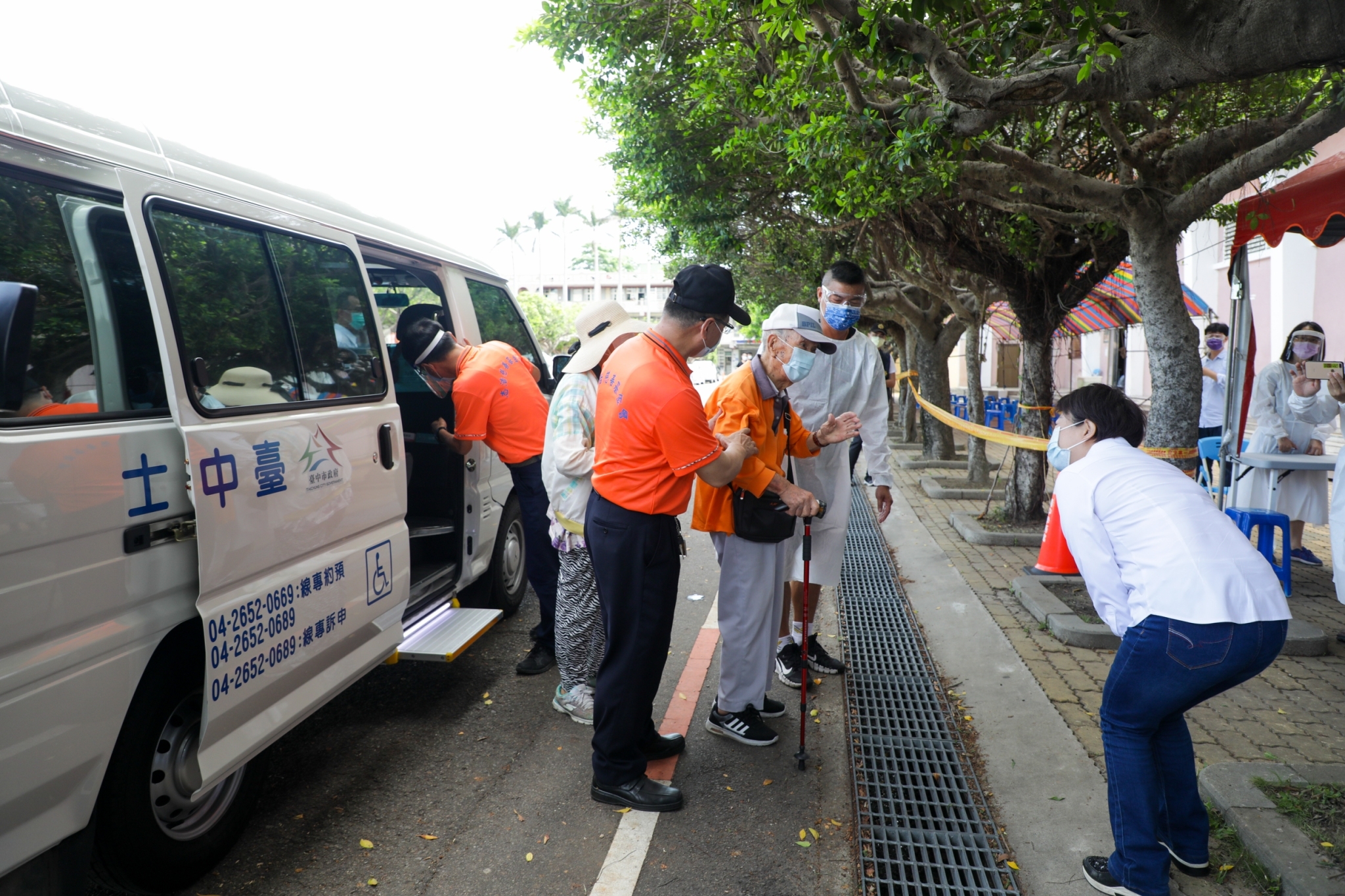 AZ疫苗從615日開放給85歲以上長輩施打後,今(17)日邁入第三天,市長盧秀燕一早便至清水國中疫苗快打站,視察復康巴士接送長者情形。盧市長指出,為讓接種疫苗更順利,社會局主動電話聯繫,協助已接獲疫苗施打通知的身障長輩免費預約復康巴士。今日90歲的李阿公和89歲的李阿嬤夫妻二人,從家中共乘一輛復康巴士到快打站,只花了十分鐘,稱讚復康巴士貼心又方便。