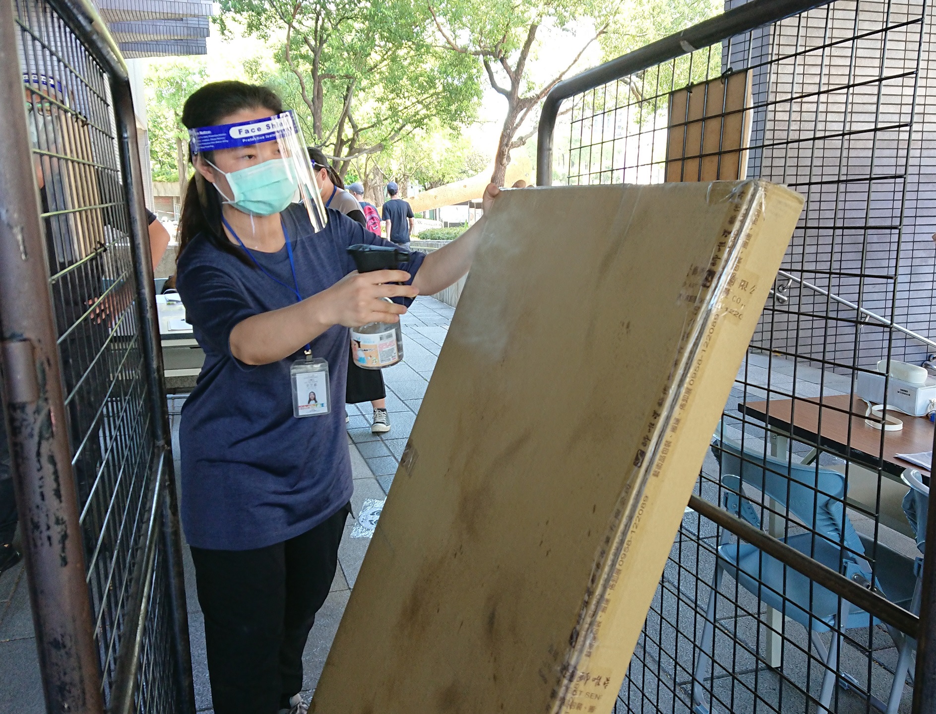文化局進一步說明,現場工作人員全程均佩戴口罩及防護面罩,工作人員收件時,先將作品外包裝全面噴灑酒精消毒,降低病菌傳遞與接觸傳染風險後拆封核對作品資料,並實際測量作品規格,確認完畢即完成收件作業。此外,文化局也結合「安心即時上工計畫」,安排3位安心上工人員協助收件,幫助受疫情影響的勞工朋友,創造雙贏。