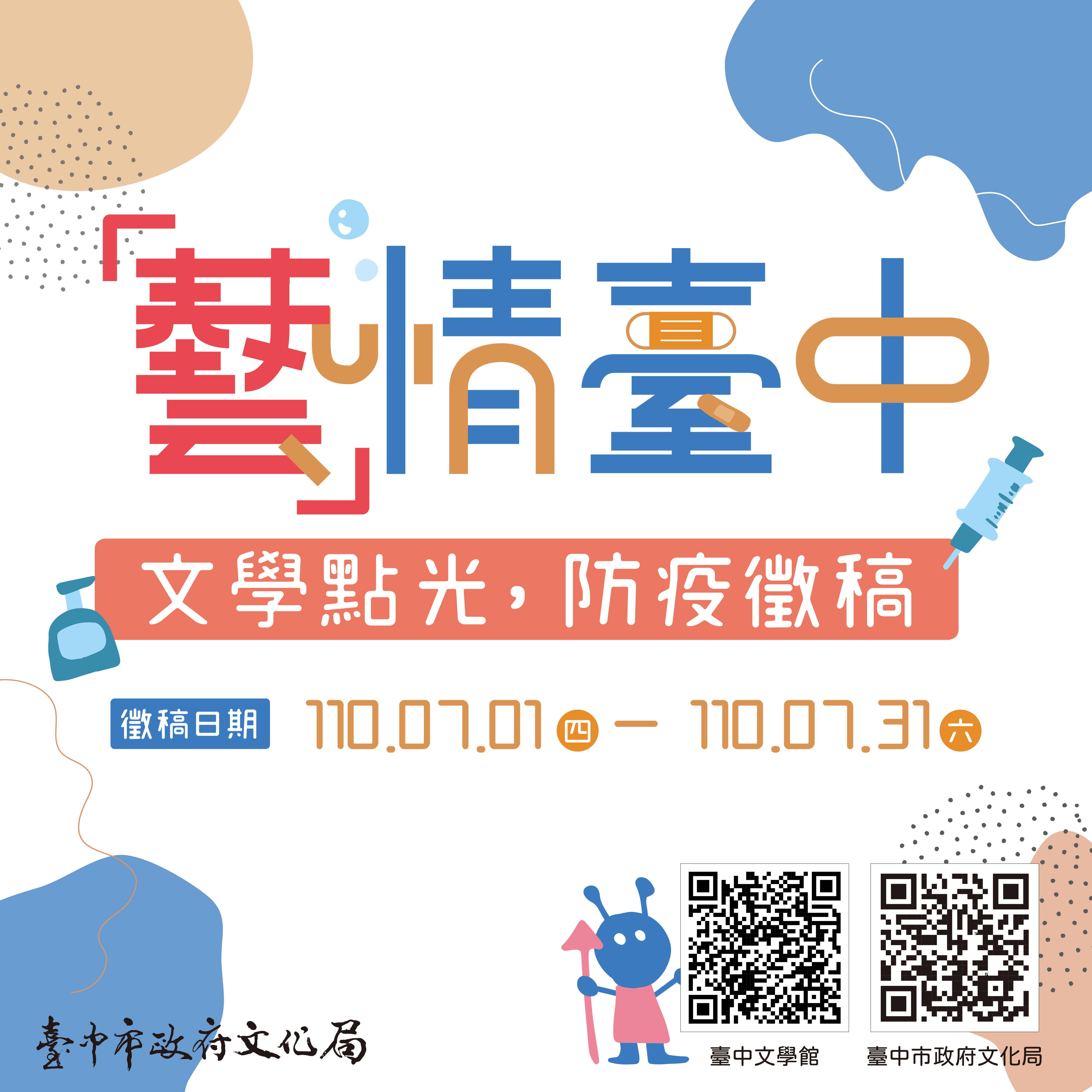 全國疫情三級警戒延長至7月12日,在全民團結抗疫的艱辛時刻,台中市政府文化局推出「藝情台中‧文學點光」徵稿活動,邀請民眾用文字紀錄疫情期間的生活觀察、心情甘苦和動人故事,自7月1日起至31日公開徵件,入選者將獲得8,000元獎金,盼市民一起用文學點光,寫下台中防疫的動人篇章。
