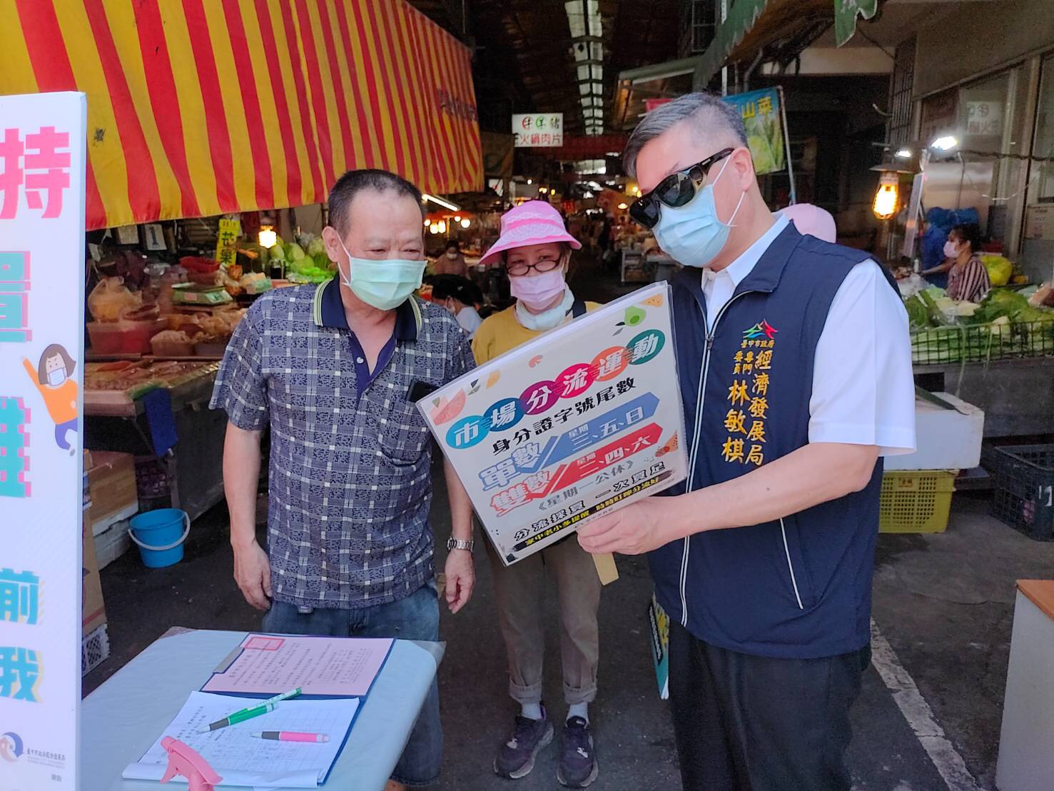 經發局長張峯源表示,全國疫情三級警戒延續至712日,國內本土疫情仍然嚴峻,尤其國內出現Delta變種病毒群聚感染,防疫仍不能鬆懈,市場採買的人潮群聚恐提高感染風險,請攤商及民眾出門務必全程佩戴口罩,做好防疫及分流措施,避免人潮聚集。