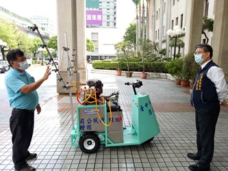 環保局表示,截至今年7月1日止,總共收到60個善心單位主動捐贈防疫物資,包含醫療用口罩、3D立體矽膠口罩支架、手套、防護面罩、護目鏡、防護衣、酒精、次氯酸鈉、背負式電動噴藥機、電動自走噴霧車、自動量測體溫暨酒精消毒機等防疫裝備,以及咖啡、飲料、礦泉水、便當等餐點,不僅提升清潔人員防疫能量,也讓基層同仁倍感溫馨;同時,民峰實業股份有限公司也借用一組個人型全自動自走式自動掃街機具,期盼降低第一線清潔人員感染及作業風險。