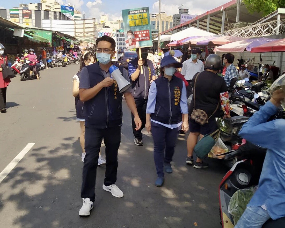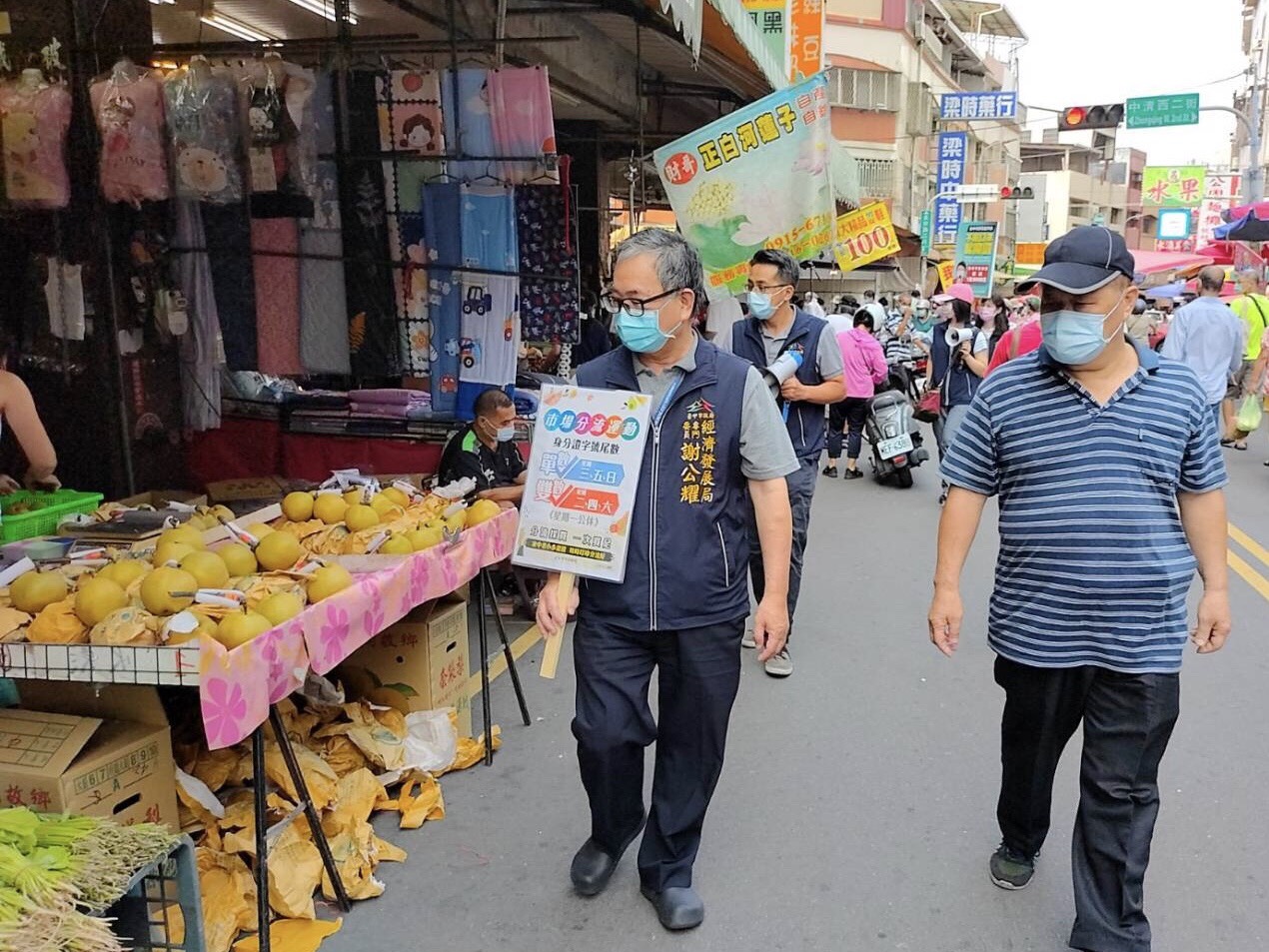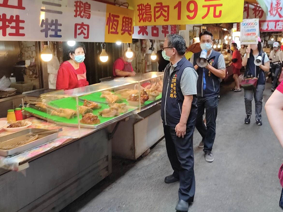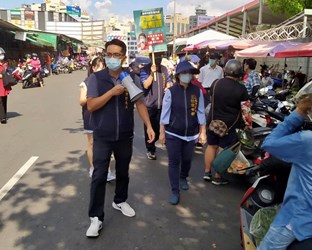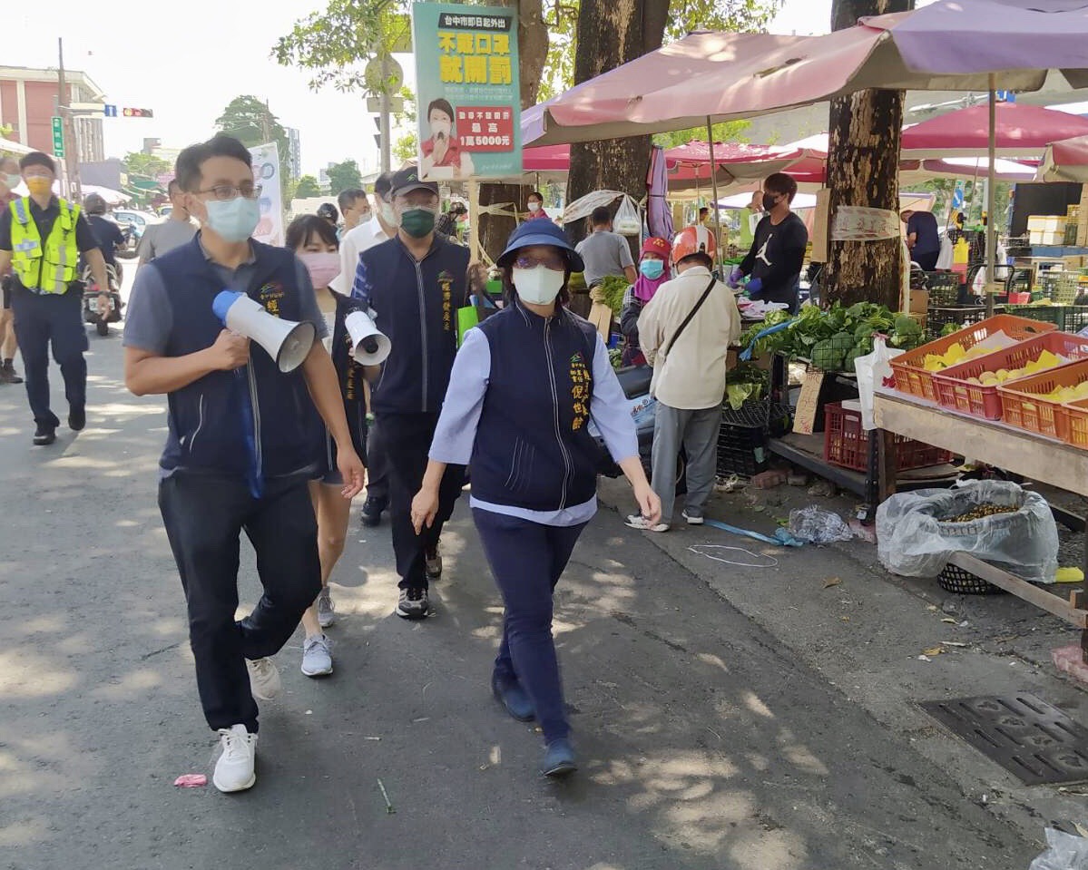 台中市日前新增2例本土確診個案,皆有傳統市場足跡。為防止市場假日群聚,台中市政府經發局利用本周末二日,由主任秘書倪世齡及專門委員謝公耀,分別帶隊至東區新民街、大智北路、八德街等攤販聚集路段,及西屯區水湳市場內與外攤區辦理稽查宣導。經過二日稽查,發現仍有3名攤商未佩戴好口罩,現場立即依違反傳染病防治法規定,各處3,000元罰鍰。