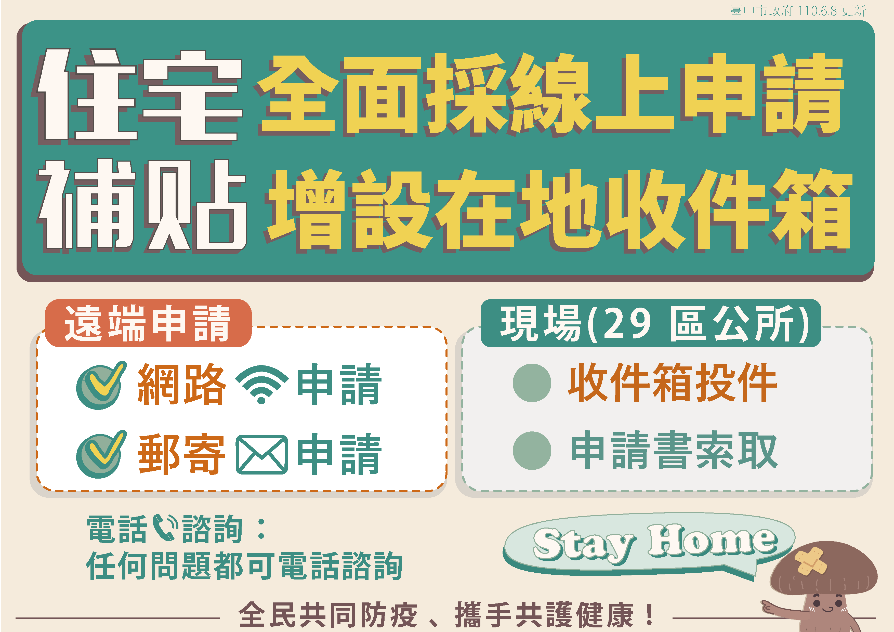 配合防疫 中市住宅補貼提供線上申請並加設收件箱