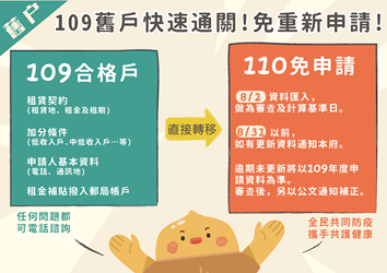 台中市政府配合內政部營建署辦理110年度「整合住宅補貼資源實施方案」,包括租金補貼、自購住宅貸款利息補貼及修繕住宅貸款利息補貼,自82日上午9時起至831日下午5時止受理申請。受到新冠肺炎疫情影響,考量住宅補貼受理人潮眾多,為降低感染風險採線上申辦,如欲採紙本申請者,可以郵寄或到各區公所快速收件箱投遞。