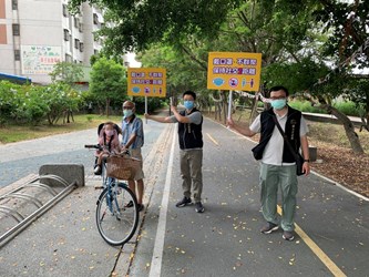 近日全台疫情有逐緩趨勢,台中市政府觀光旅遊局配合疫情三級警戒延長防疫指引,今(13)日起有限度開放部分觀光場域,並於開放首日出動「台中景點疏導隊」視察景點狀況,針對東后豐自行車道、潭雅神綠園道、新田登山步道、大甲鐵砧山雕塑公園及大坑9號、9-1號、10號步道周邊等加強巡查,宣導民眾遵守防疫措施,維護自身健康。