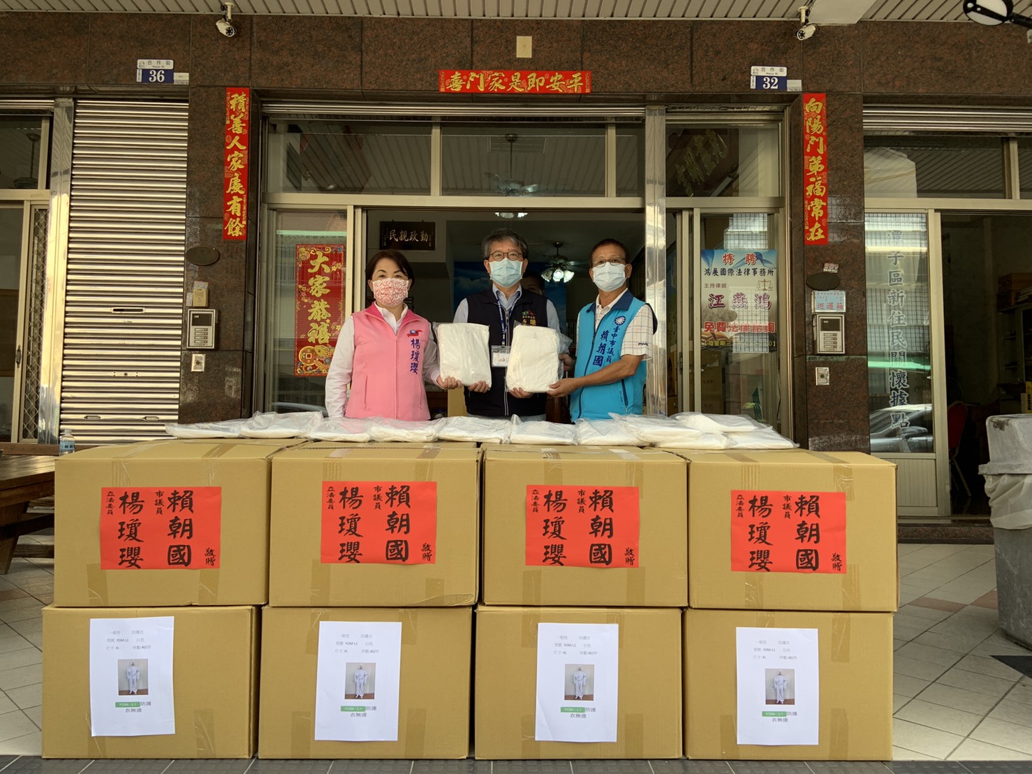 此外,立委楊瓊瓔與台中市議員賴朝國也捐贈1,000件防護衣,提供前線清消人員從頭到腳的保護;立委張廖萬堅與台中市議員林祈烽,也結合新新管理顧問有限公司和善心人士連軍凱先生捐贈1萬個口罩,讓清潔人員防護裝備更充裕。